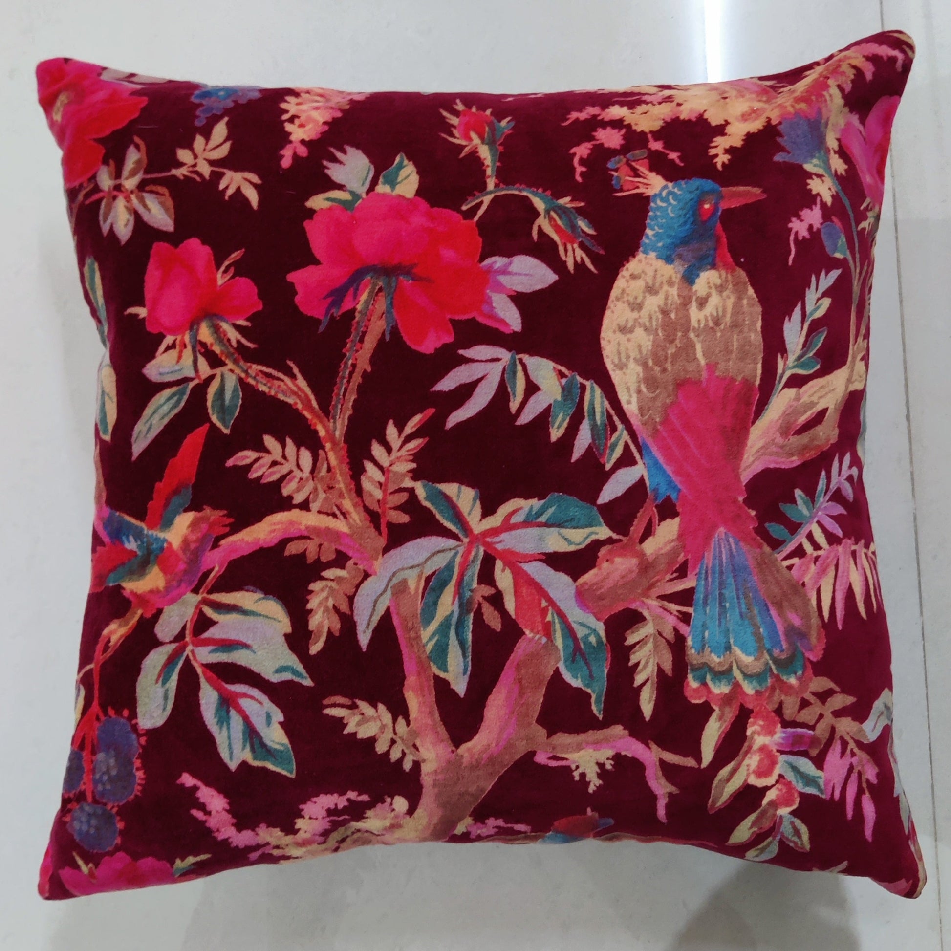 18" Luxe Maroon Paradise Velvet Cushion Cover-Sale