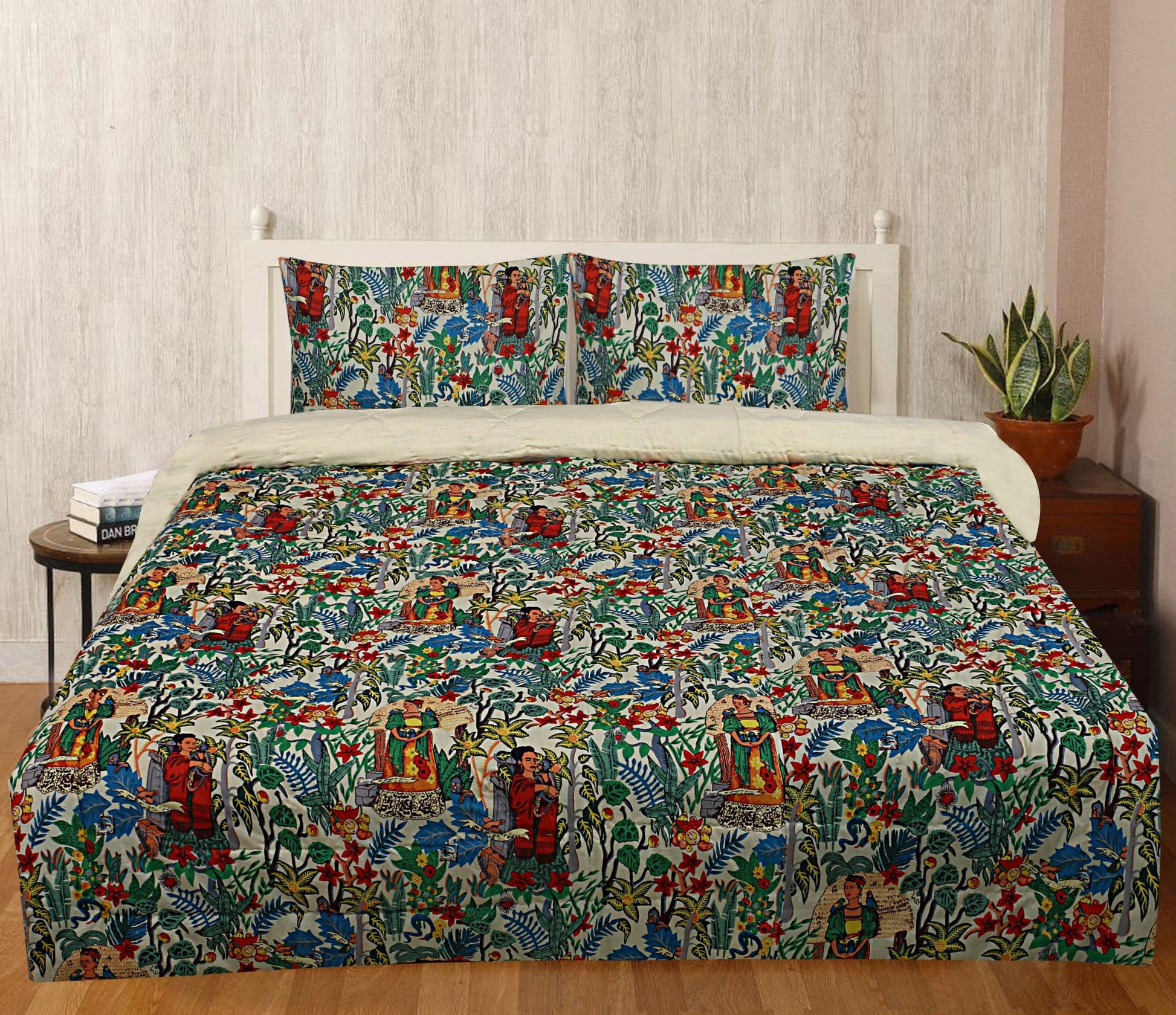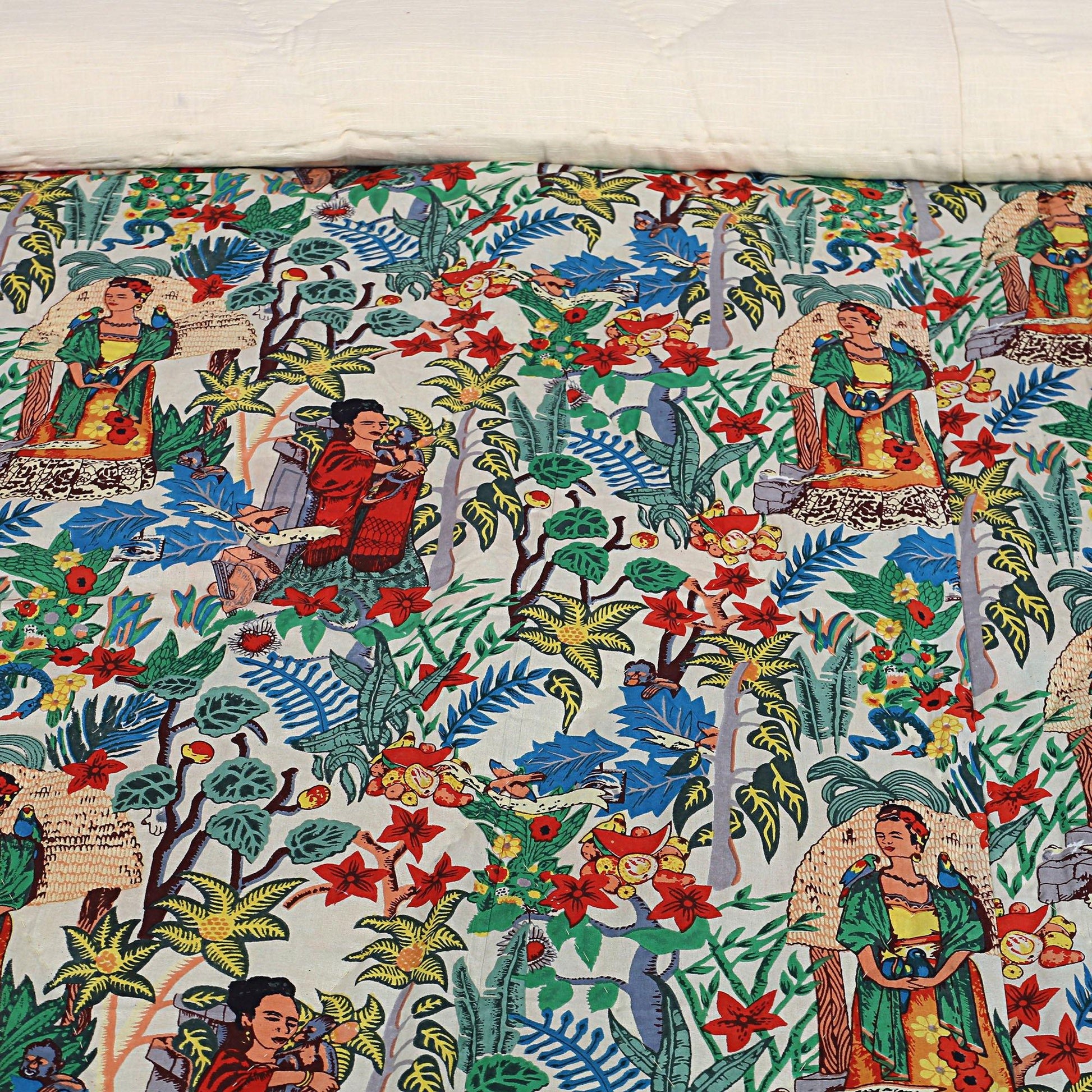 200 GSM Cotton Quilt Frida Kahlo Beige with pillow covers