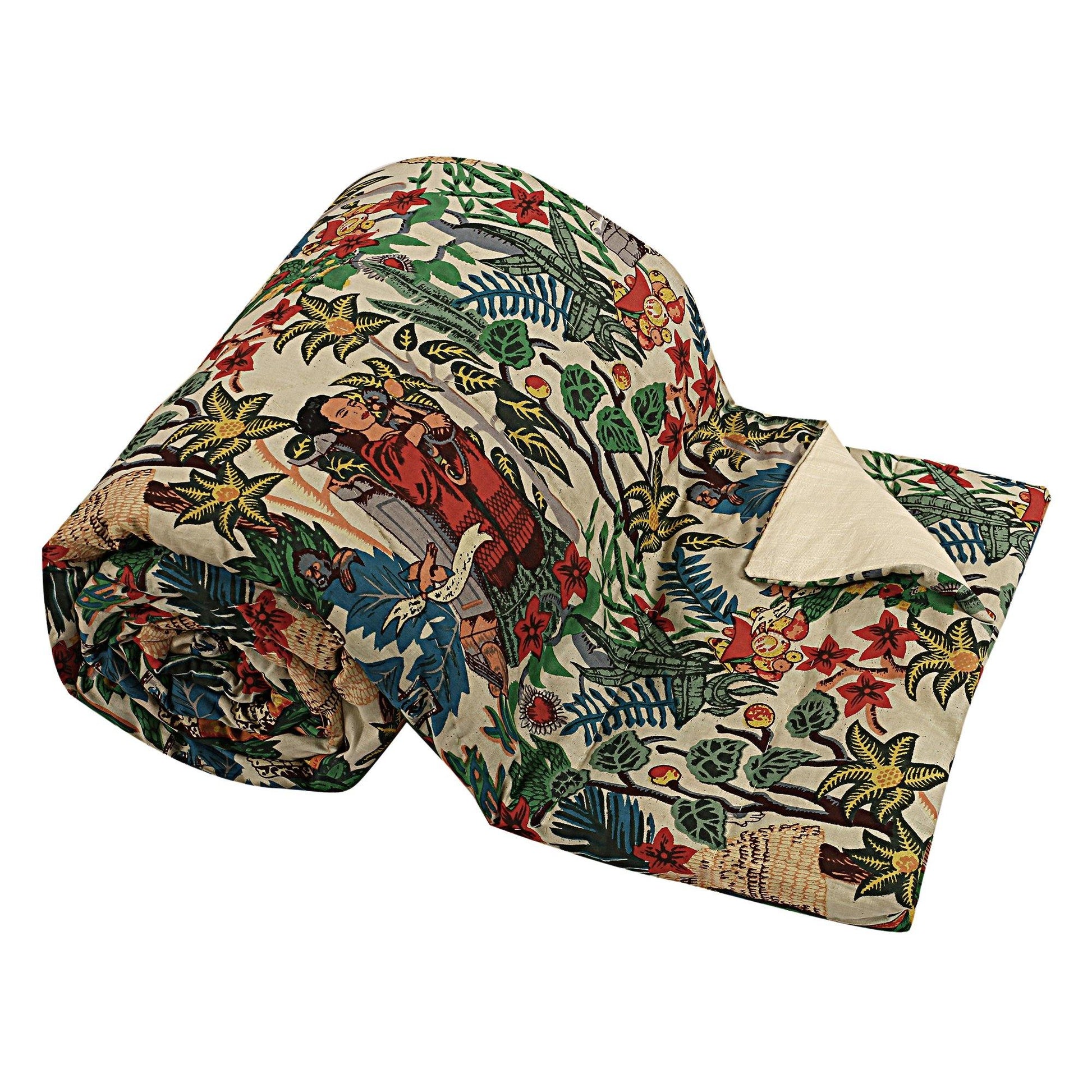 These Beautiful Printed, fluffy, hand-made Indian quilts are a specialty of Jaipur. This spectacular quilt will enhance the beauty of your home decor as well as provide you warmth on cooler winter nights. A 100% Pure Cotton,Light Weight Razai , Can Be Used Each In Winters In Addition To In Summers As A/C Cover. The Double Bed Comforter/Quilt Features A Striking Design To Add A Few Freshness In Your Contemporary Bedding.Do Not Bleach, Dry Clean only to Sustain The Color Brightness And Shine Of The Comforter.