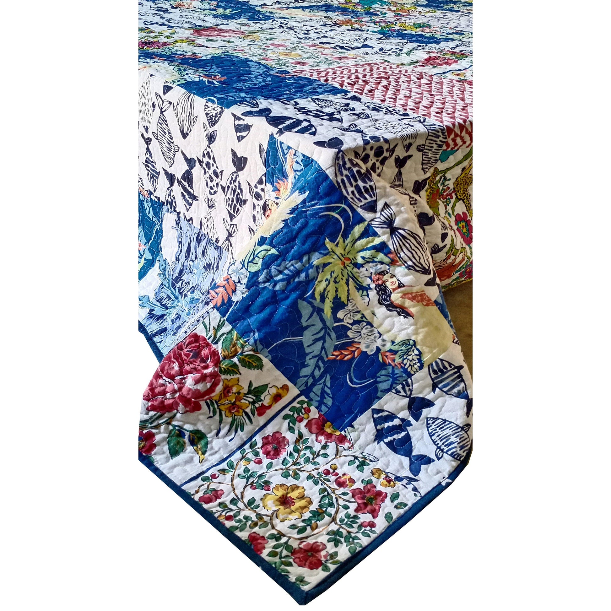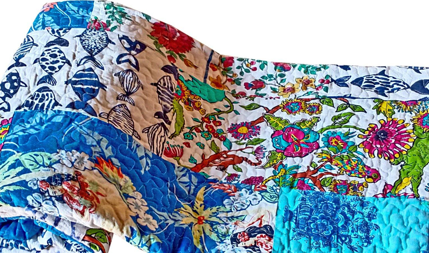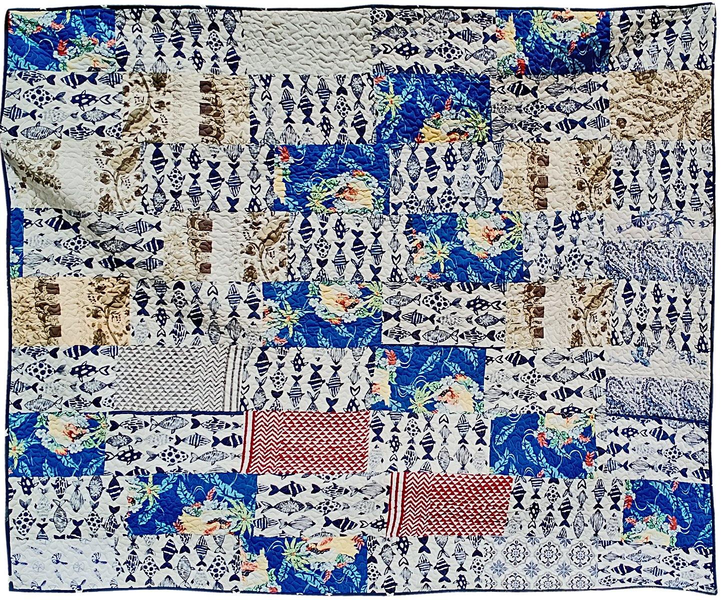 Aquatic Patchwork Machine Quilted Bedcover King Size