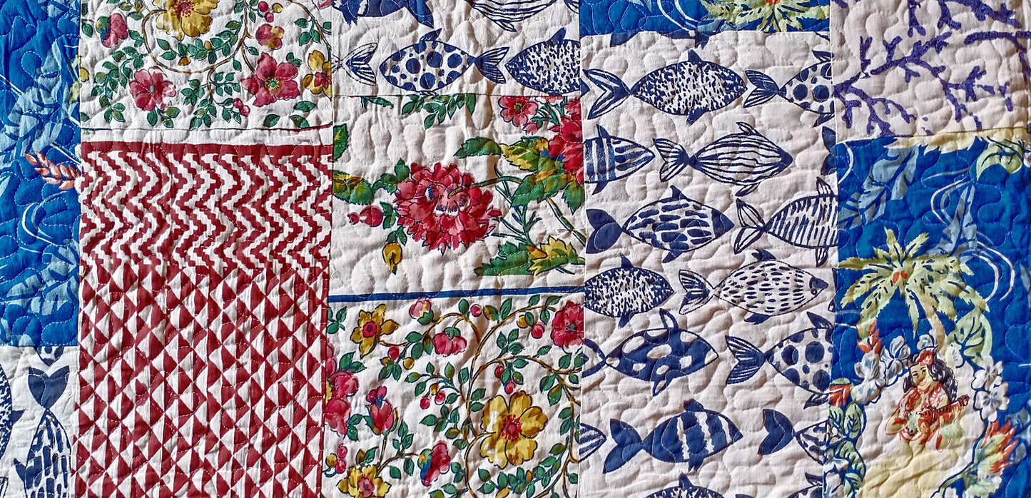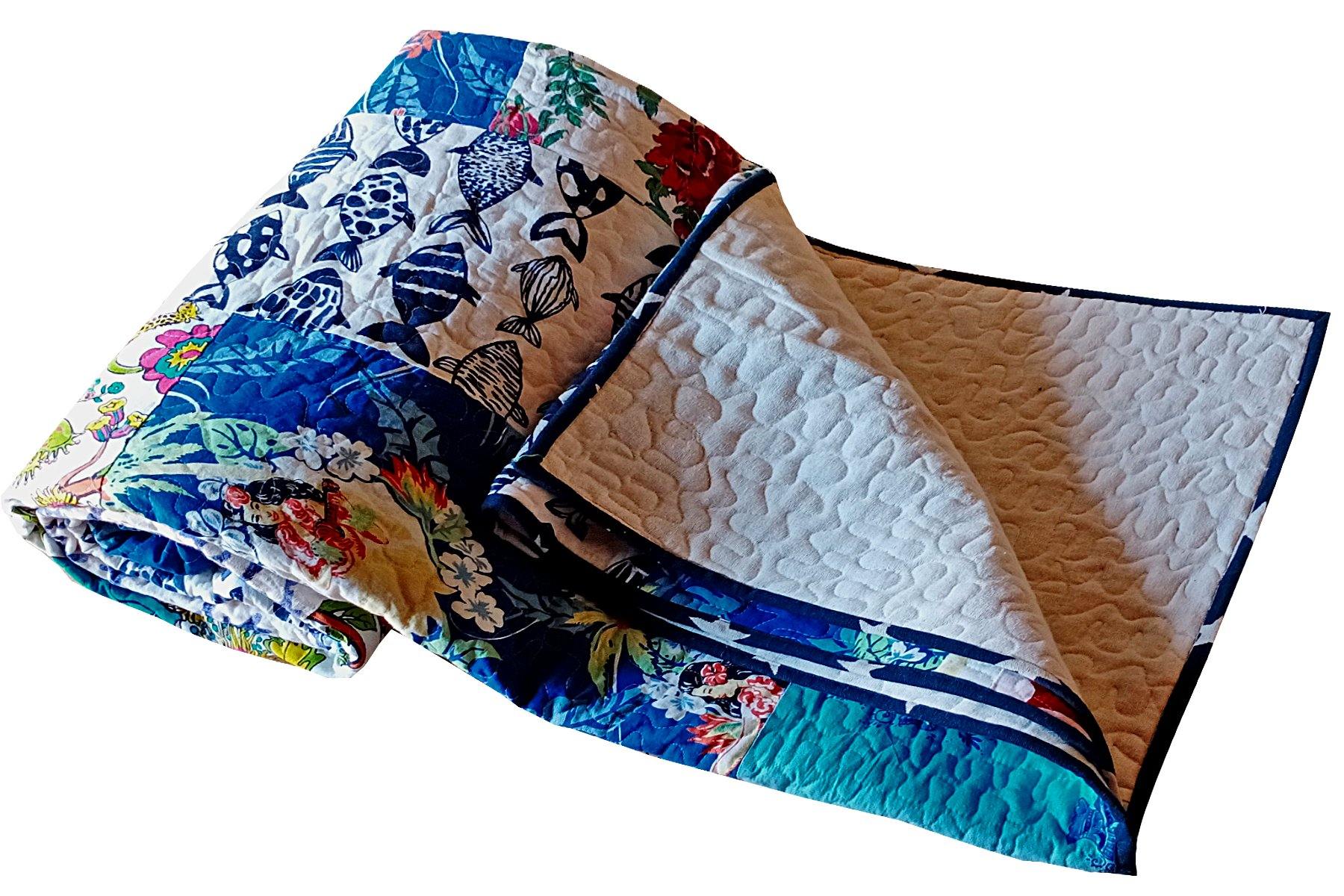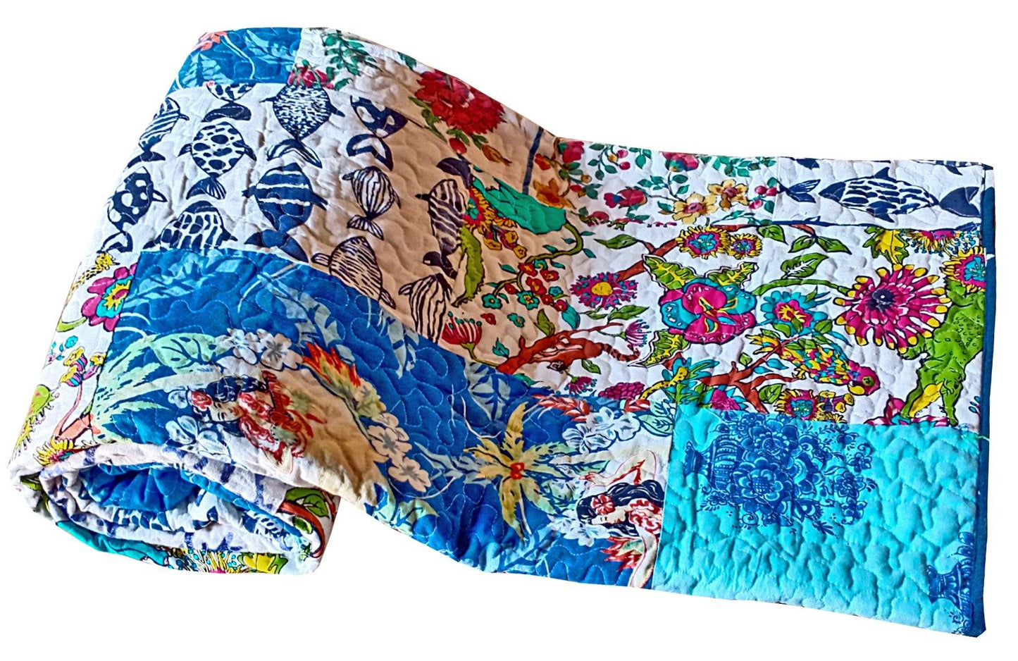 Aquatic Patchwork Machine Quilted Bedcover King Size