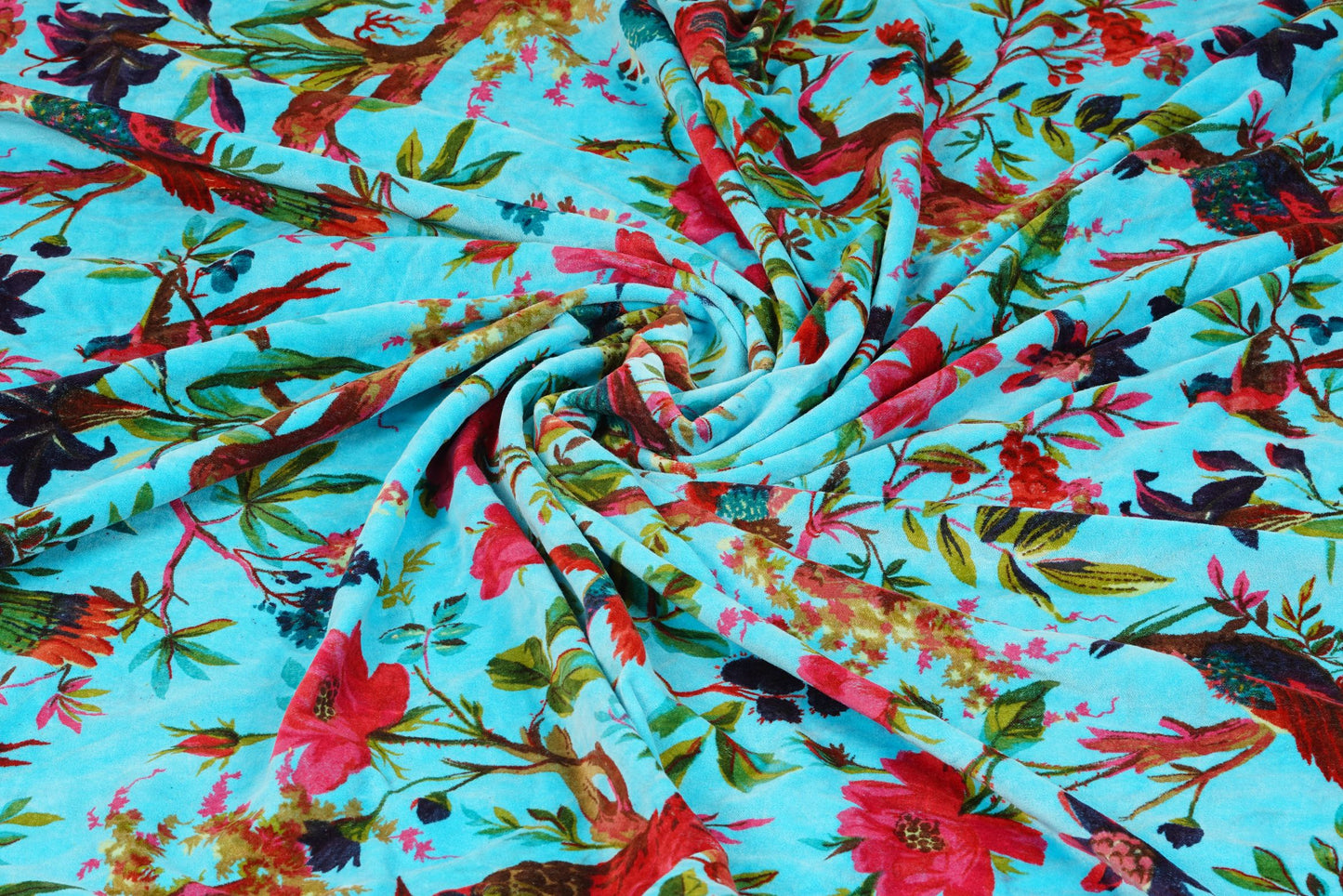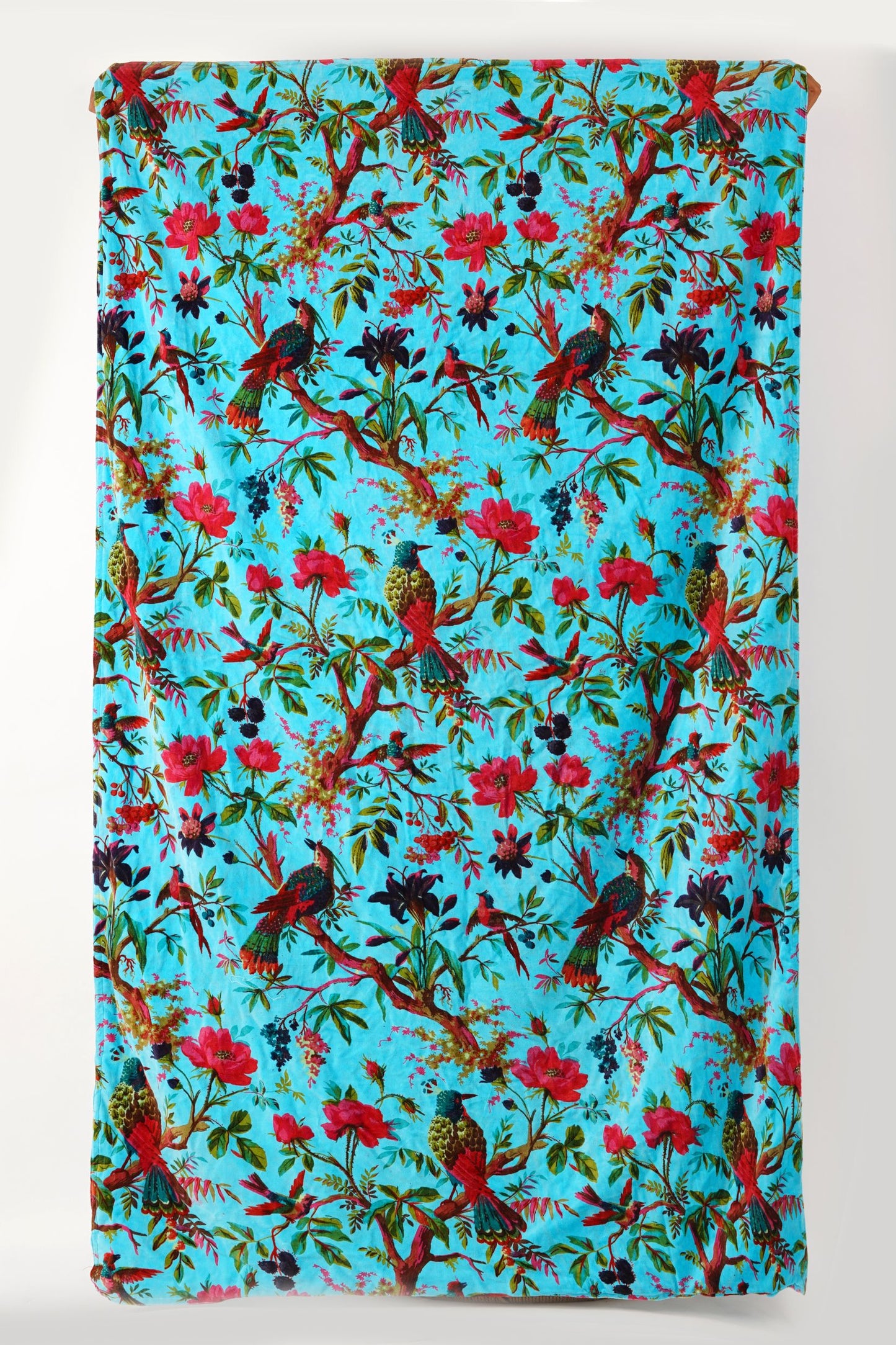 Birds of Paradise Velvet Sofa throw only- Turquoise Blue