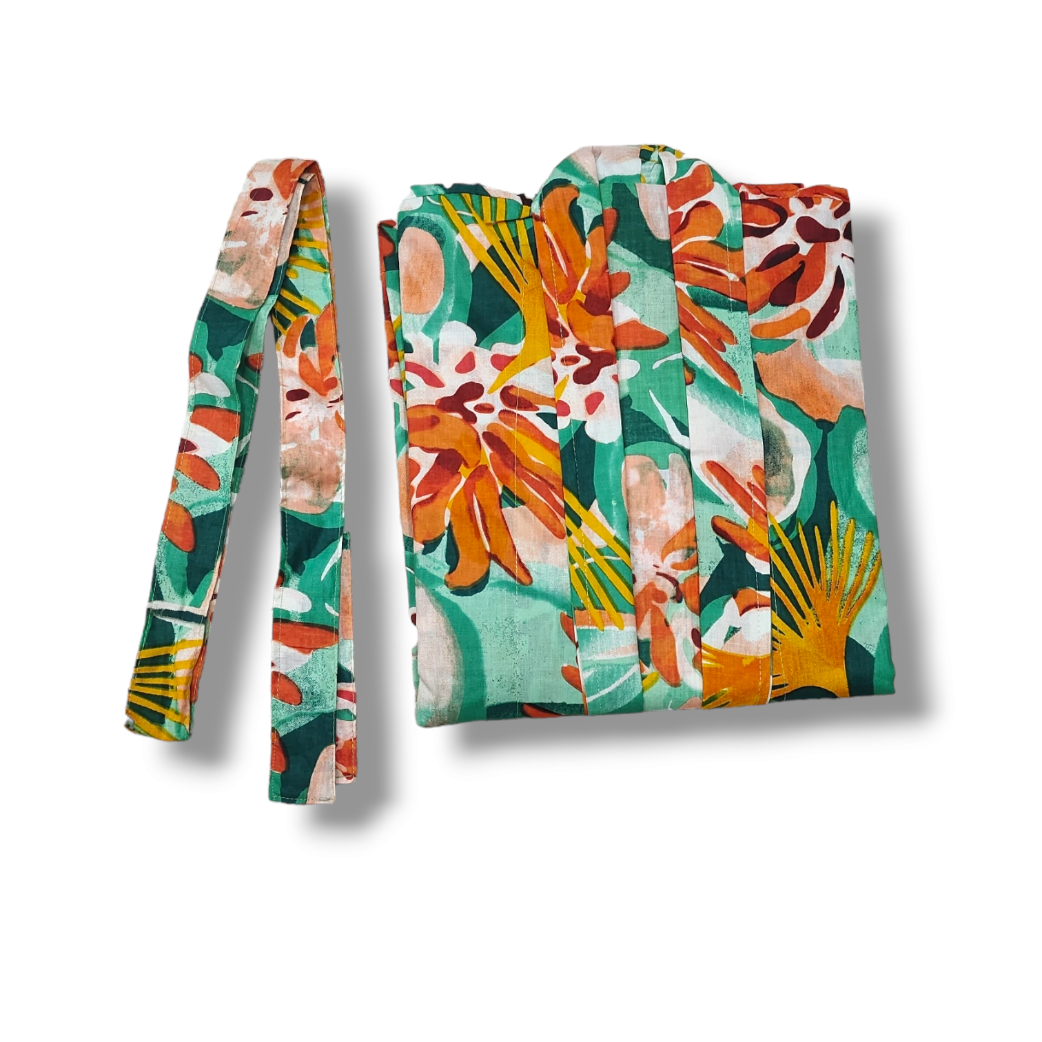 COTTON HAND PRINTED KIMONO ROBE dy1