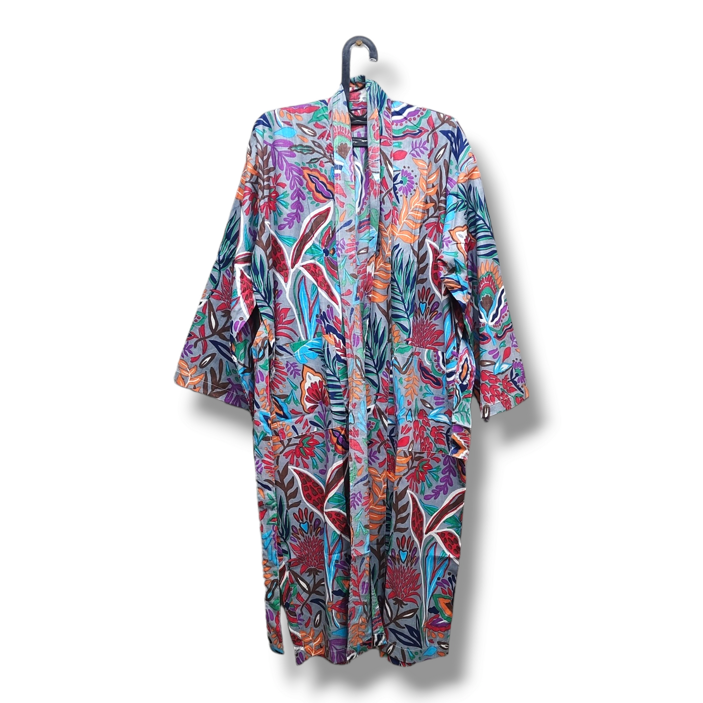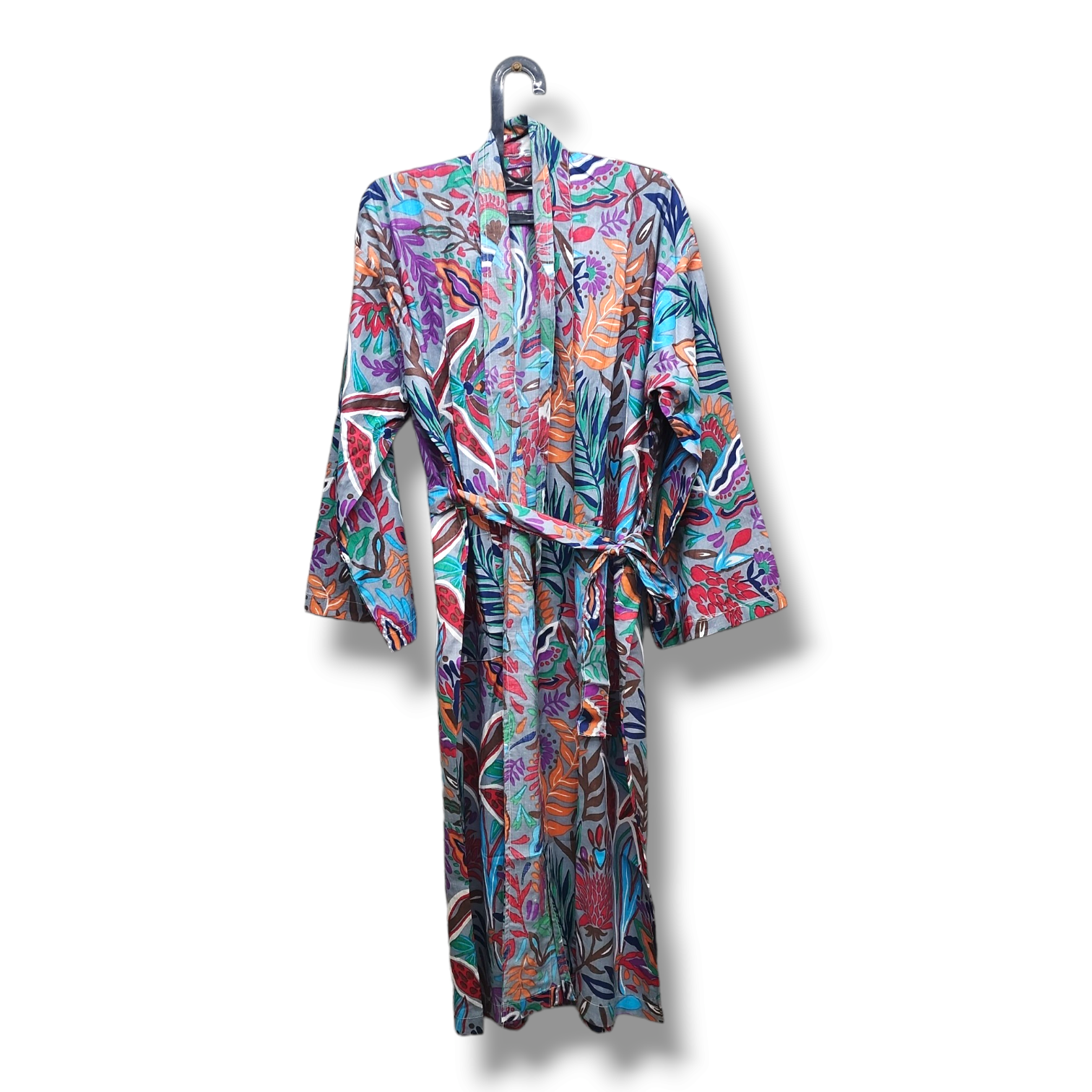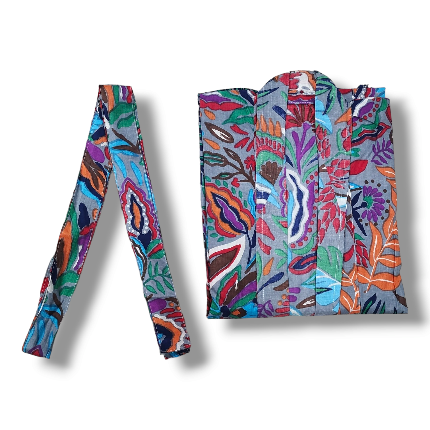 Cotton Hand Printed Kimono Robe Vibes Grey