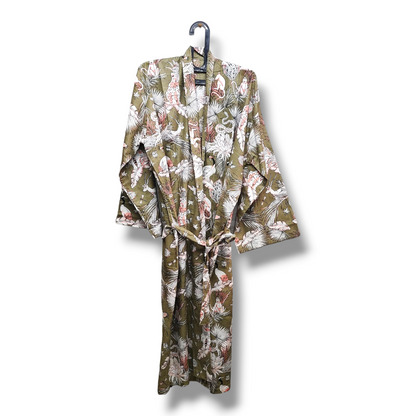 Cotton Hand Printed Kimono Robe Green King
