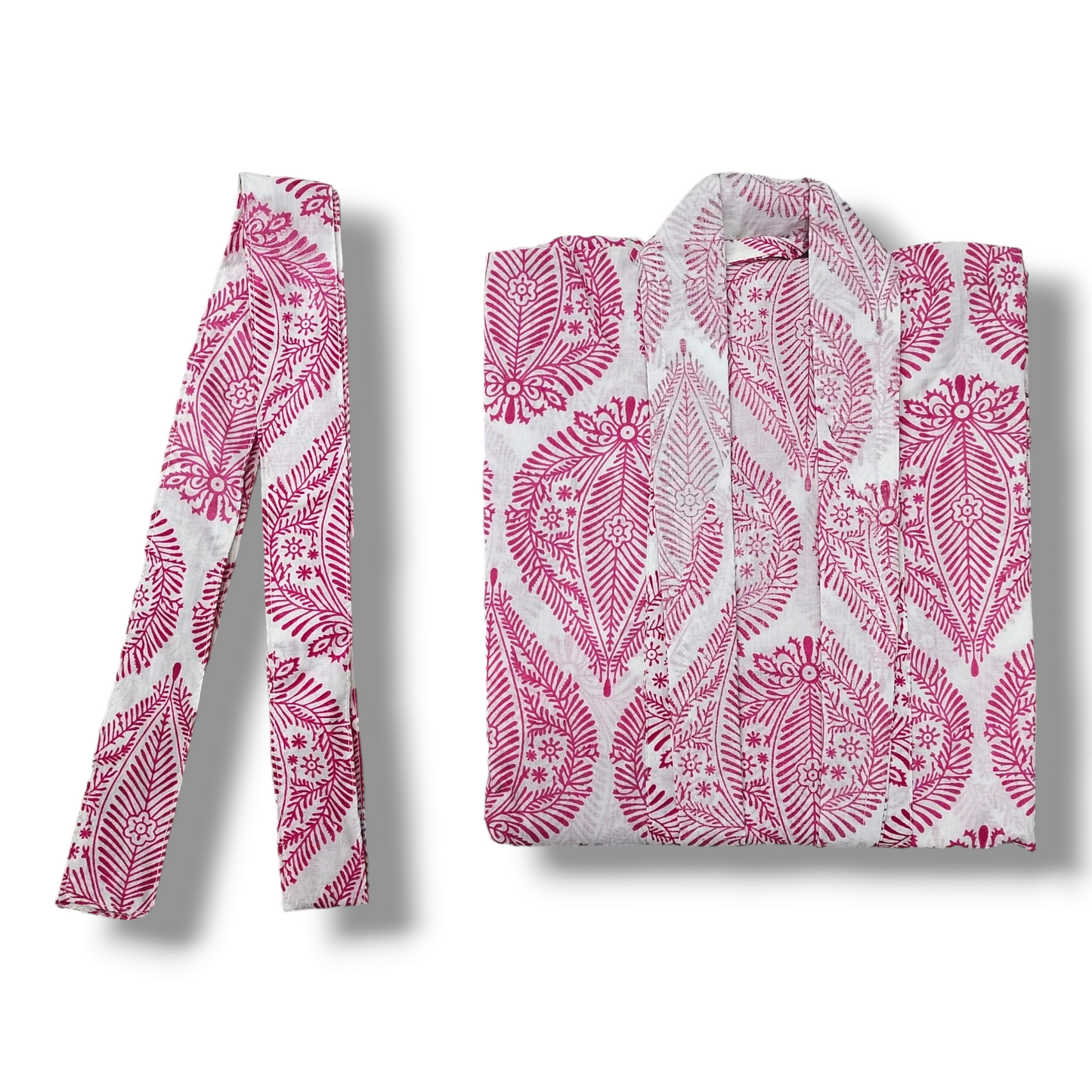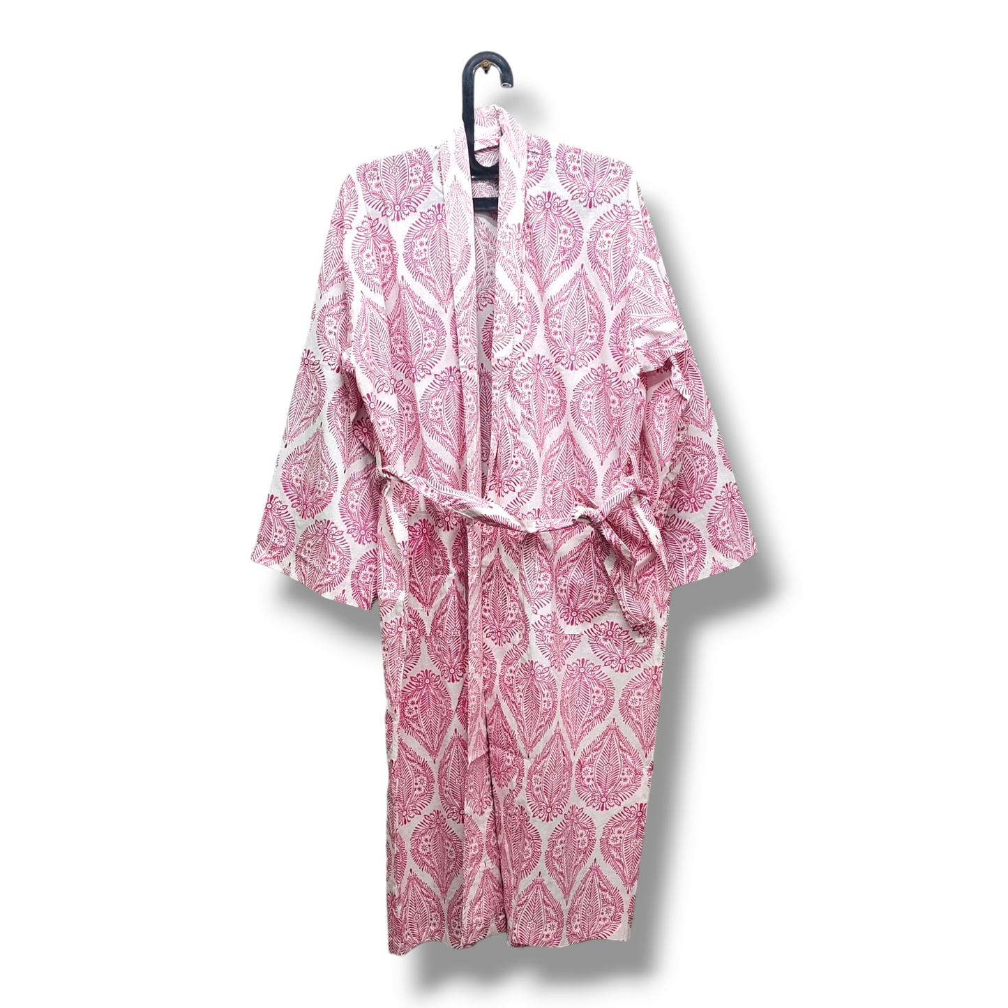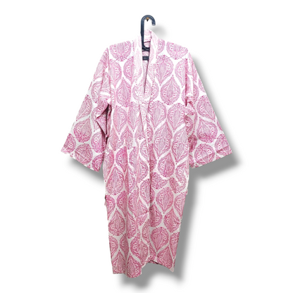 Cotton Hand Printed Kimono Robe Palladio Pink
