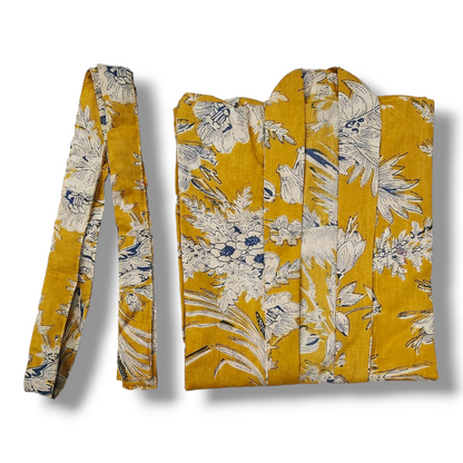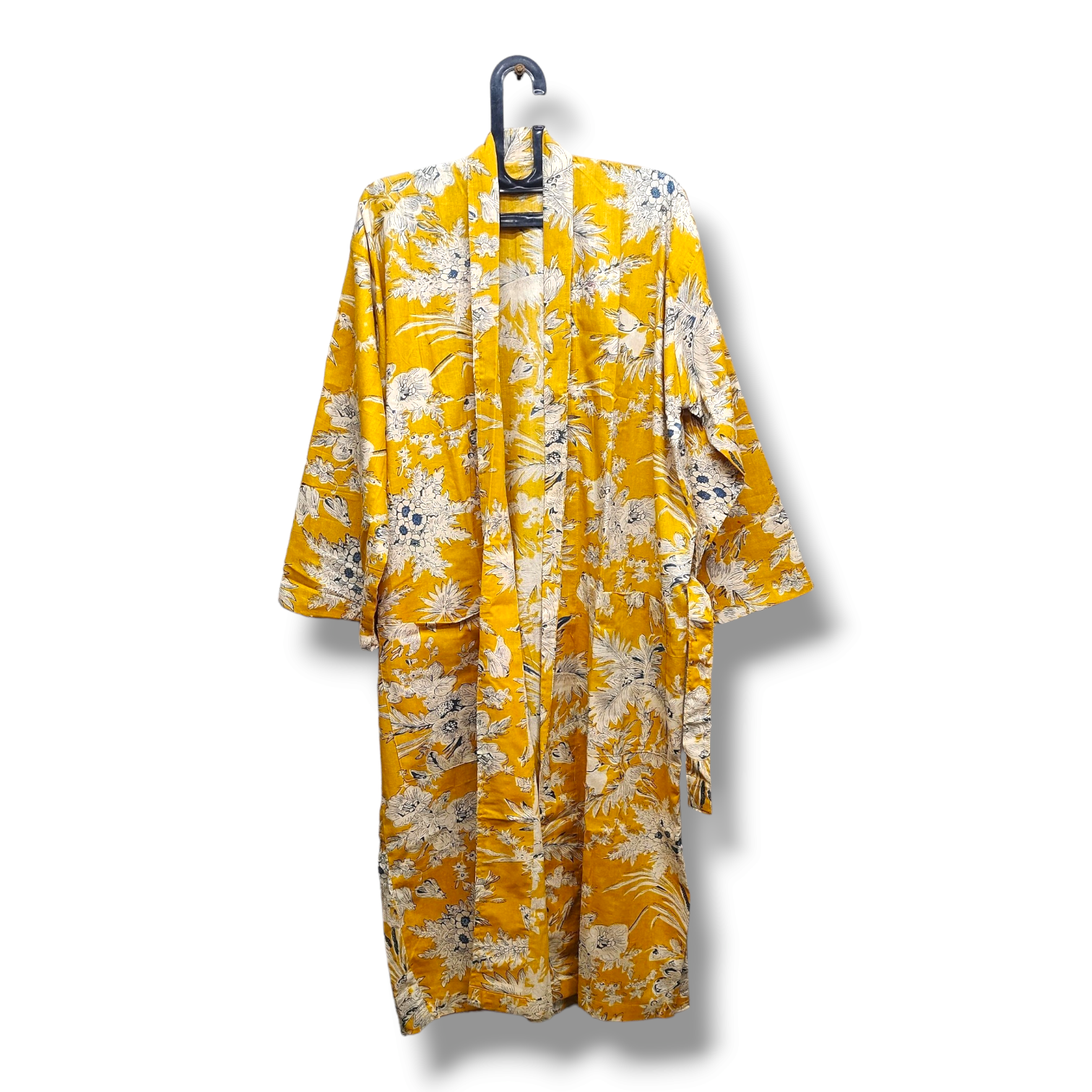 Cotton Hand Printed Kimono Robe Yellow Sparks