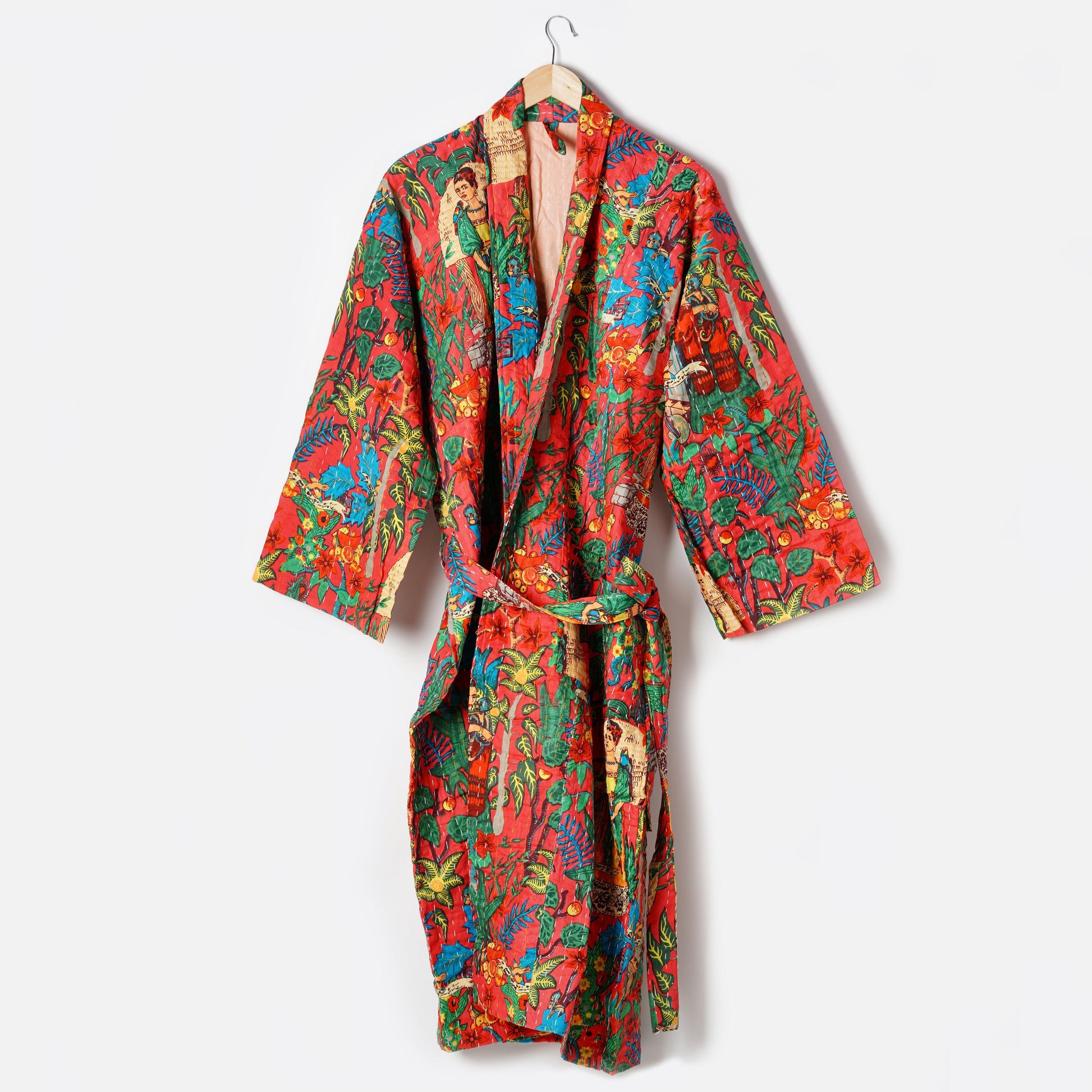 Frida Kahlo Kantha Quilted Kimono Bath Robes/ Night Suit -Red