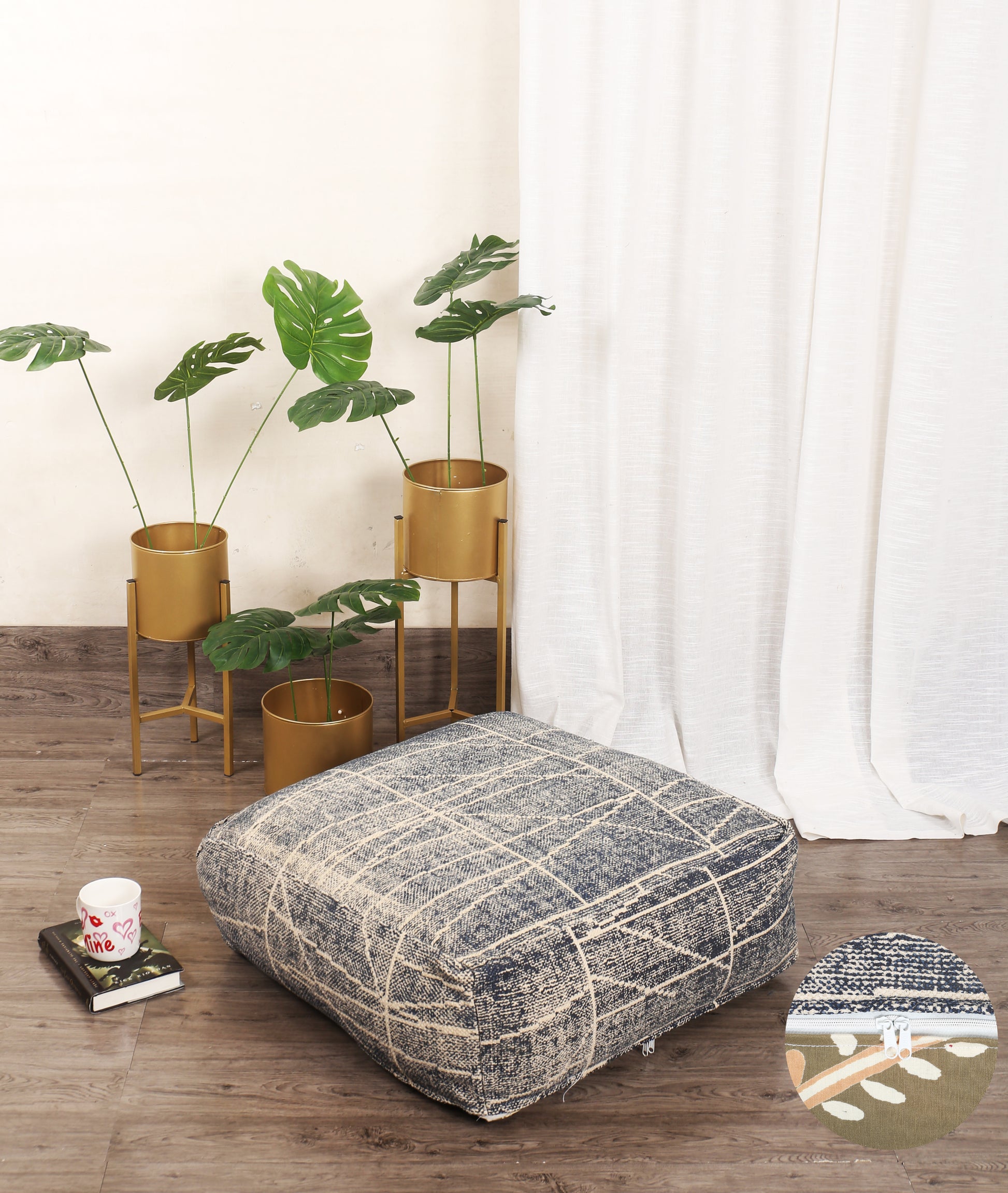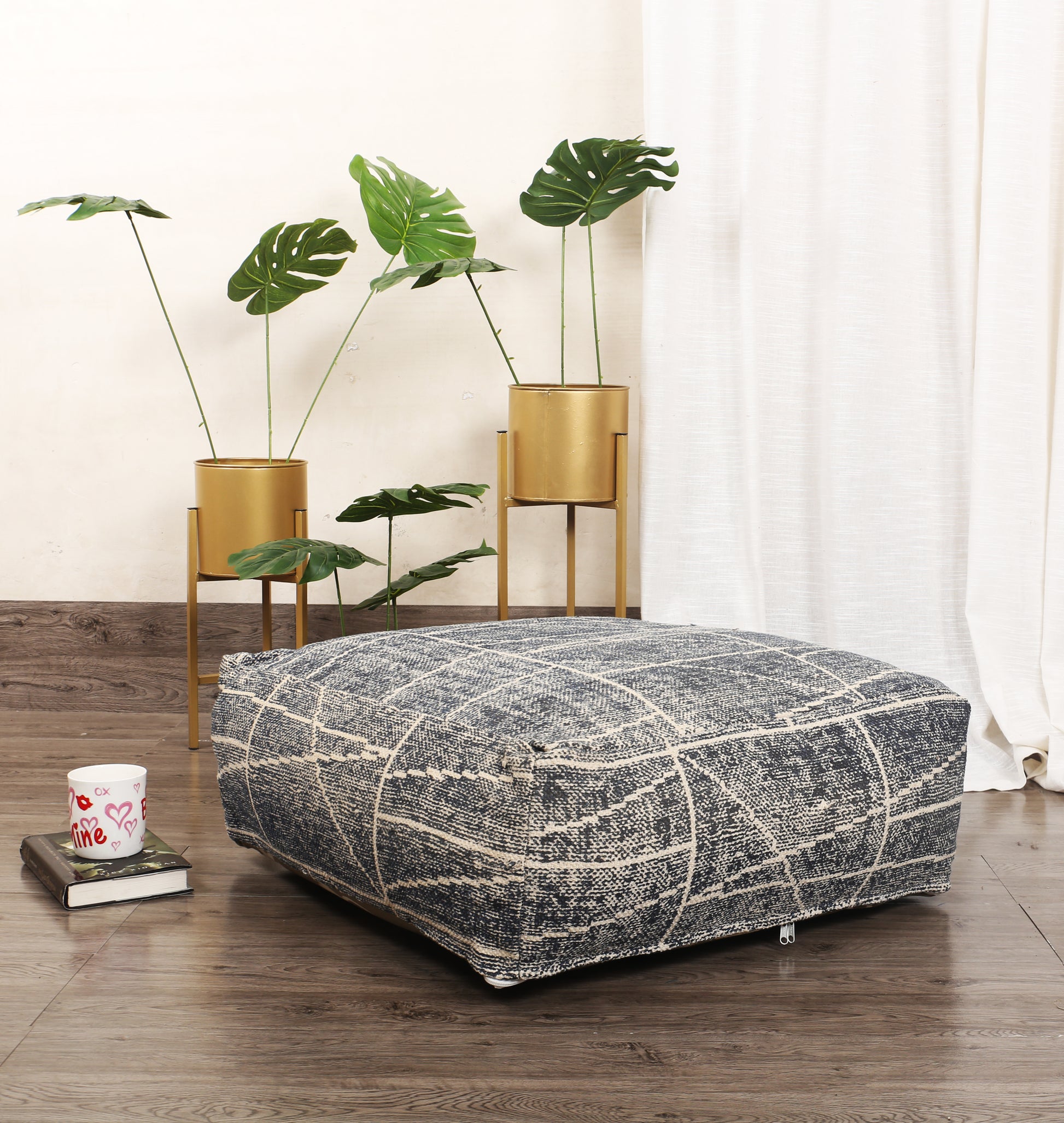 Unleash the potential of your living space with our versatile cotton rug ottoman! Perfect for both indoor and outdoor use, this multipurpose pouf is the ultimate addition to any room. Use it as a cozy footrest or as extra seating for your loved ones (or even your furry friends!). Stuffed with cotton waste, our ottoman is both practical and eco-friendly.