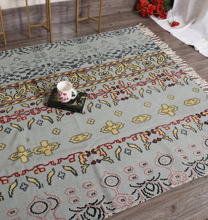These Rugs are Handwoven in rural areas of India, designs are inspired by abstract ideas all around us. They are pre washed for durability. There can be certain irregularities in the print which makes it more appealing as it signifies human effort in executing the product.