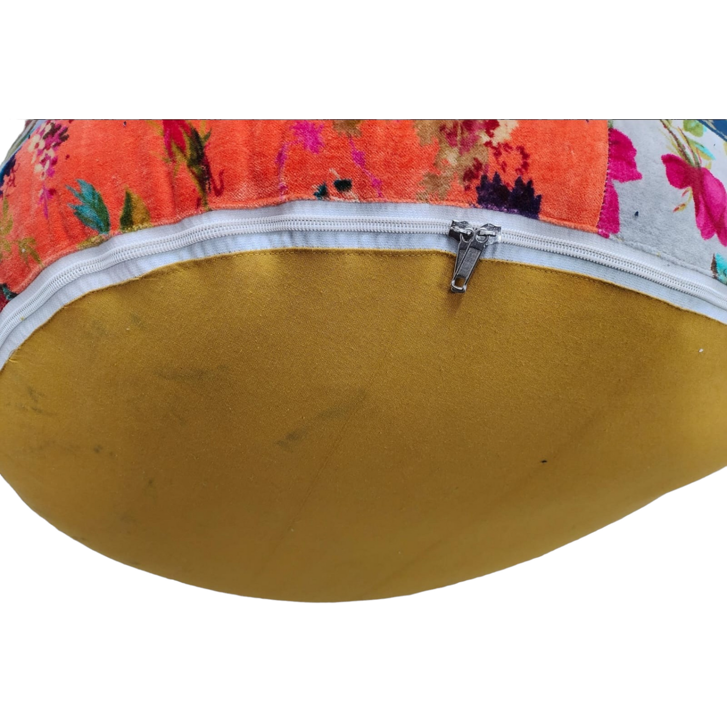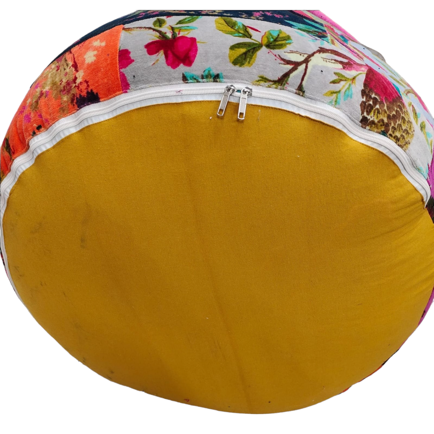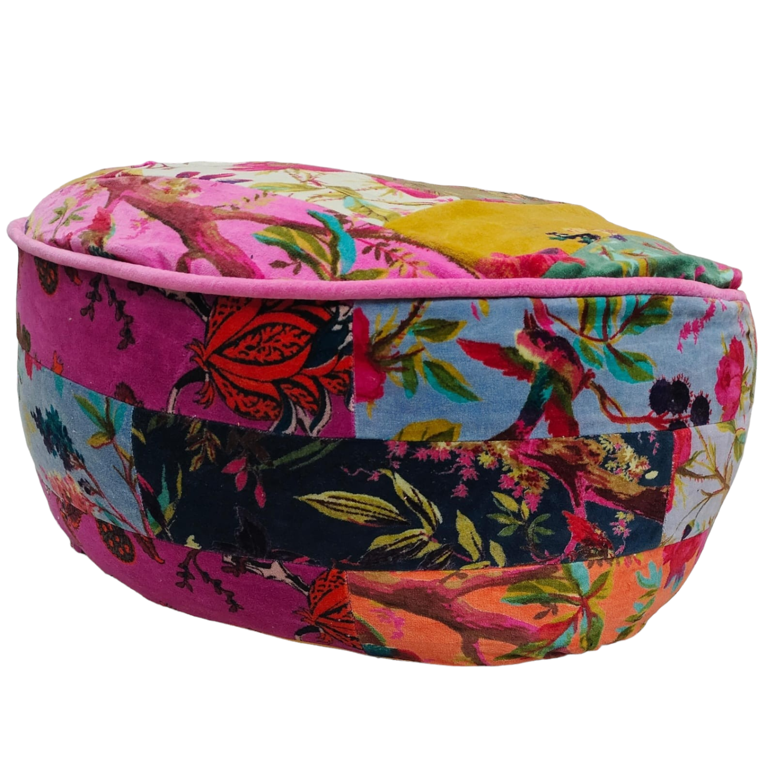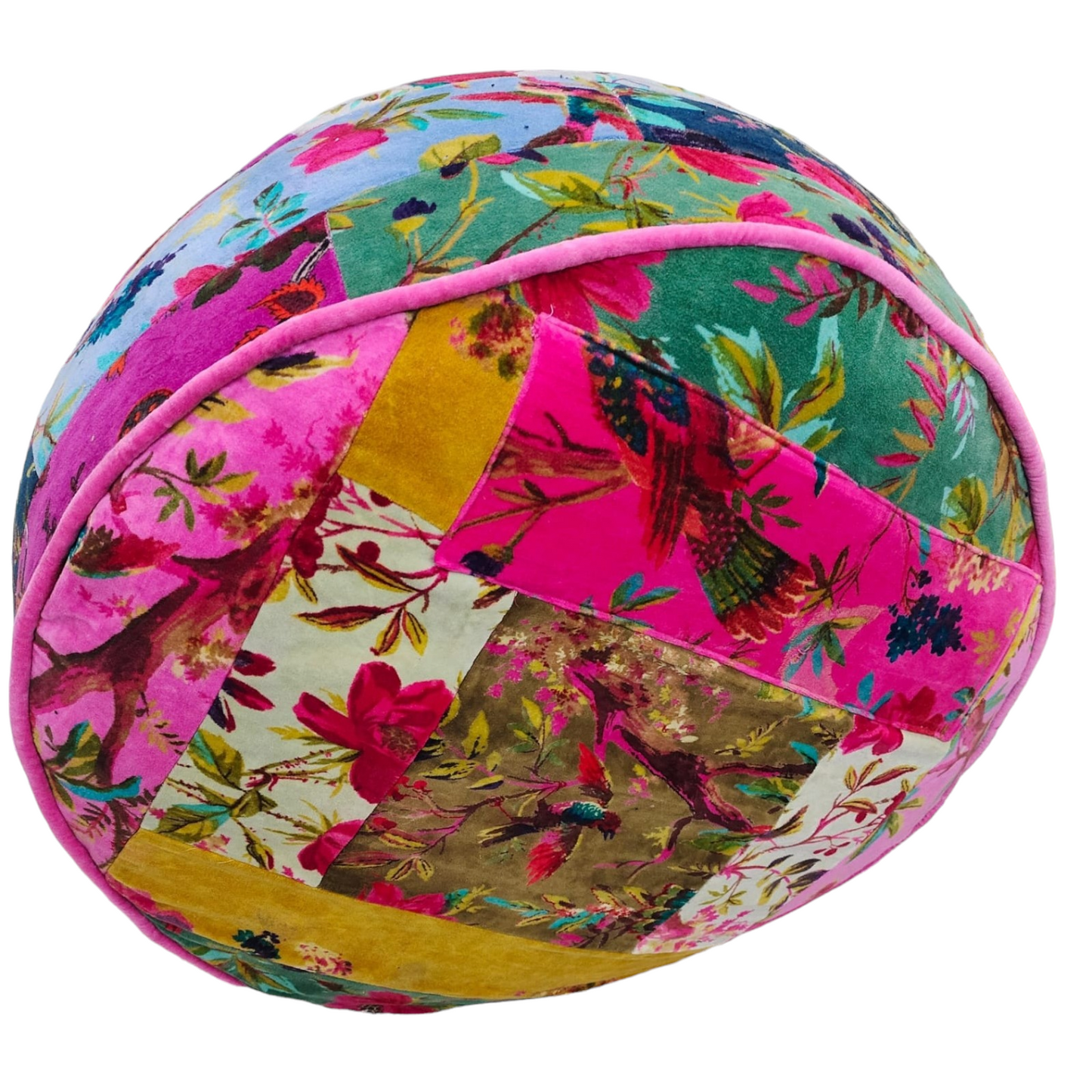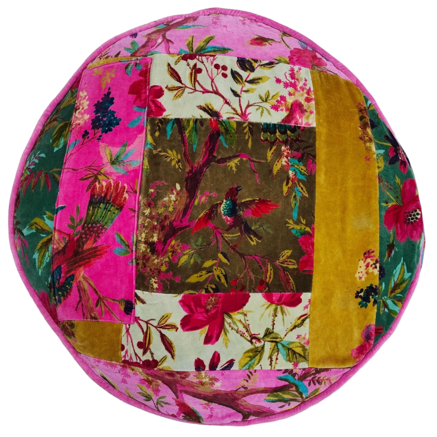 Patchwork Velvet Round Ottoman / bean bag -Bright Pink