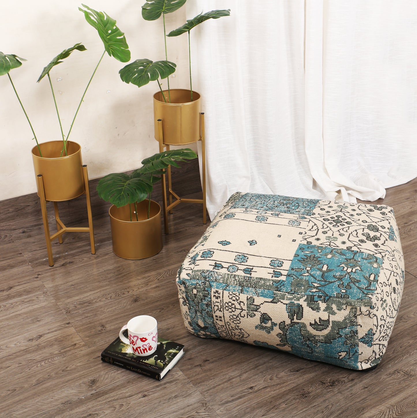 Accessorize any space with the cotton rug ottoman great for indoor or outdoor use, Ideal for distinguishing small spaces. Our pouf provides a soft footrest or additional seating for your family or guest wherever you need it.