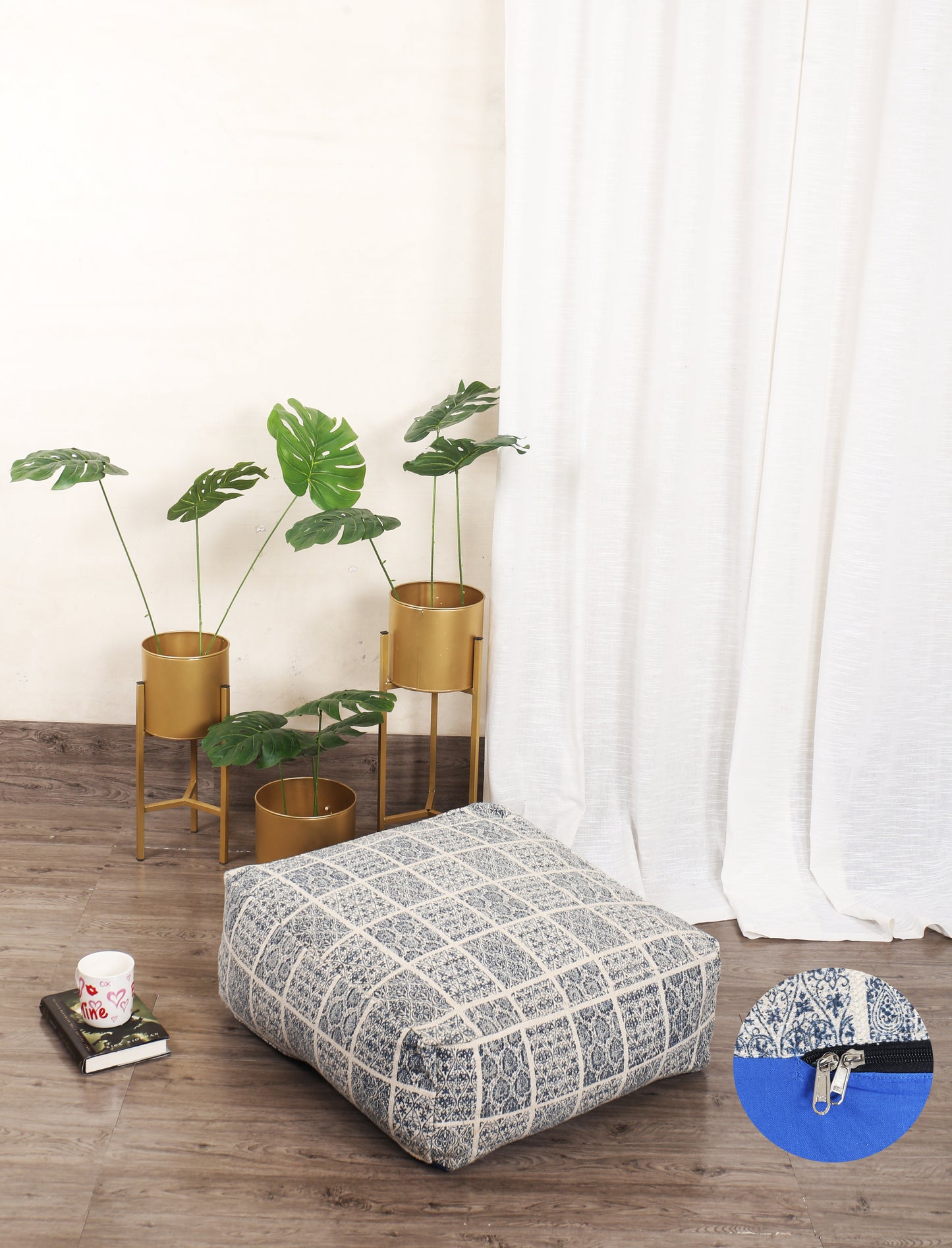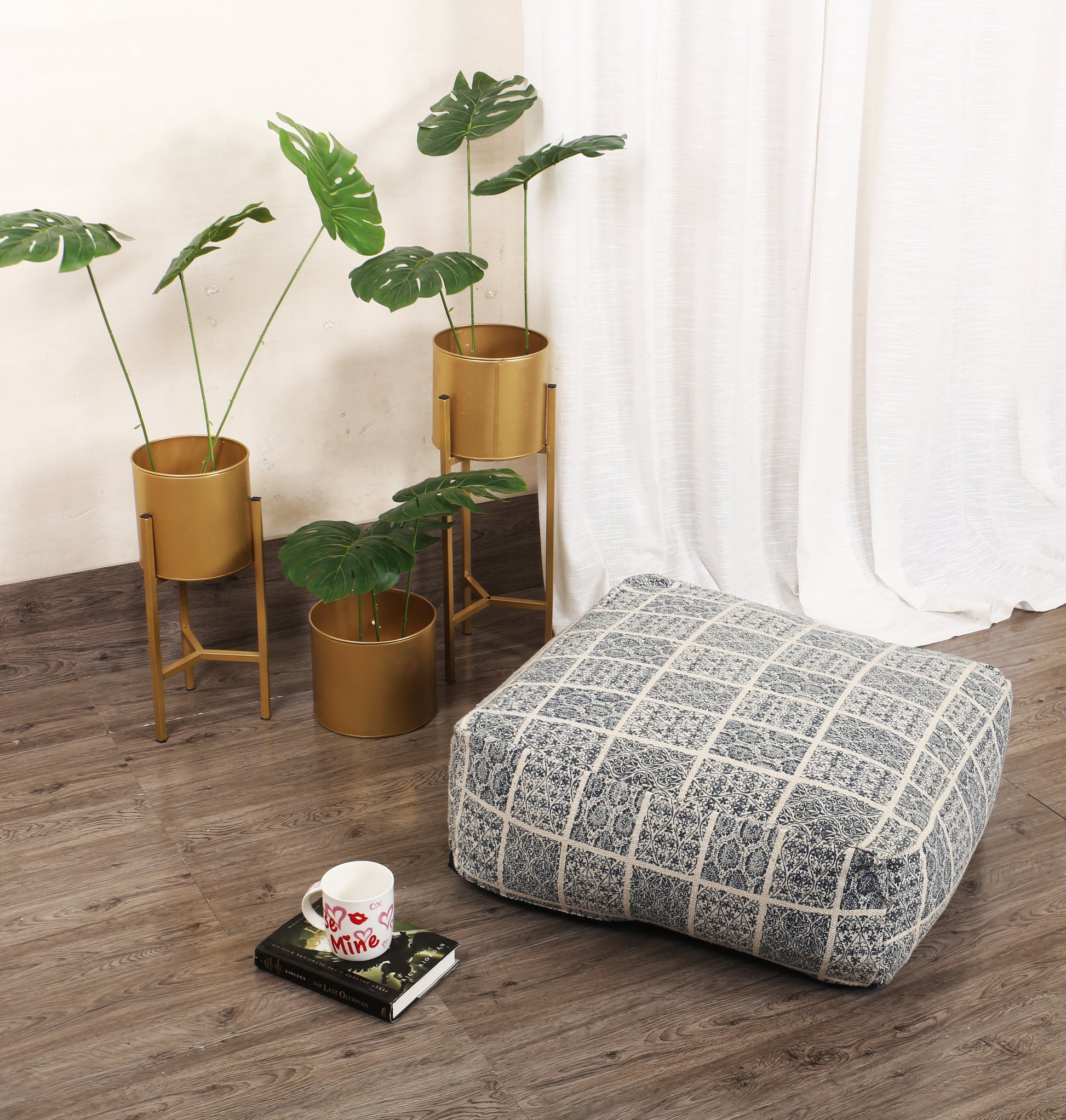Accessorize any space with the cotton rug ottoman great for indoor or outdoor use, Ideal for distinguishing small spaces. Our pouf provides a soft footrest or additional seating for your family or guest wherever you need it.