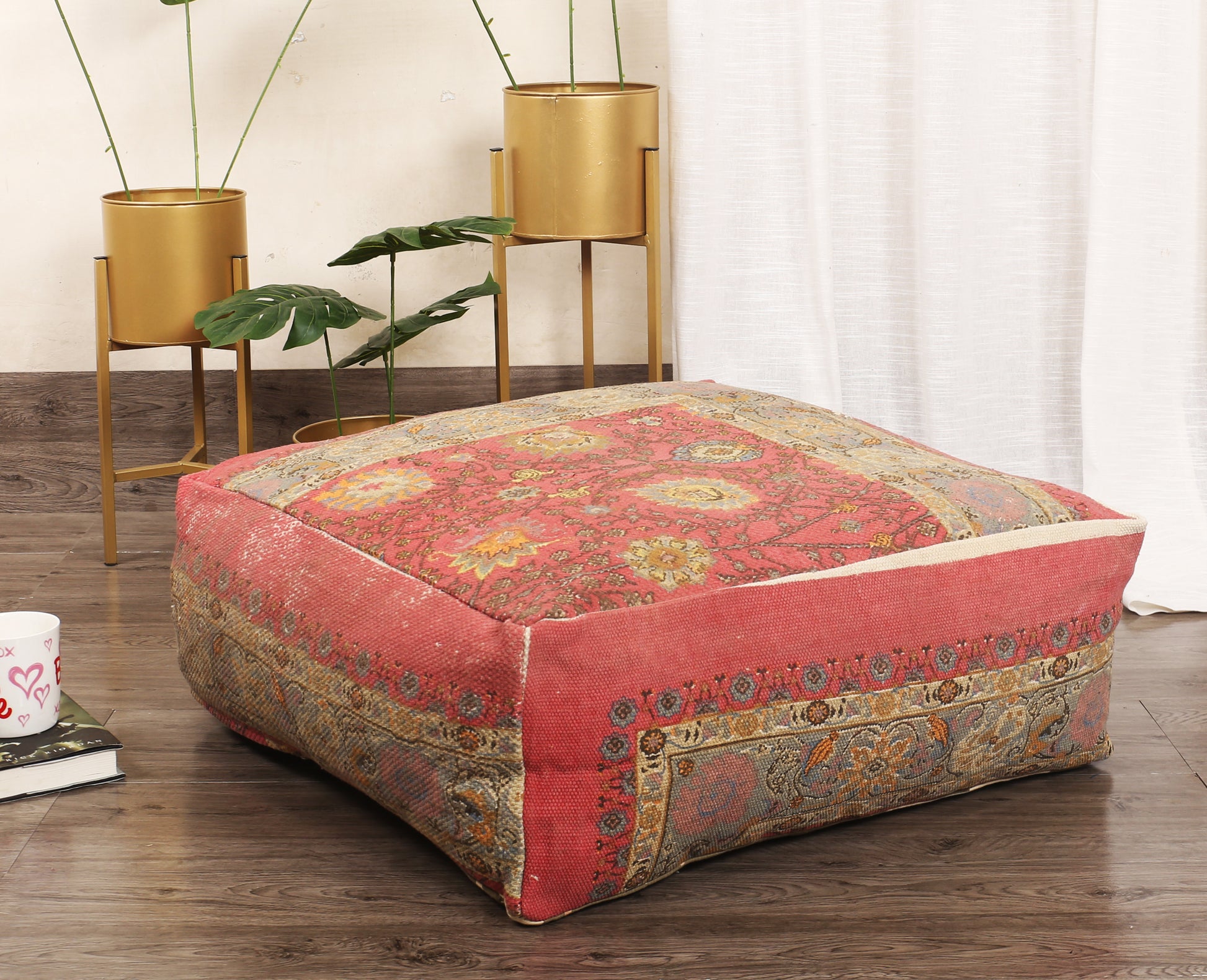 Accessorize any space with the cotton rug ottoman great for indoor or outdoor use, Ideal for distinguishing small spaces. Our pouf provides a soft footrest or additional seating for your family or guest wherever you need it.