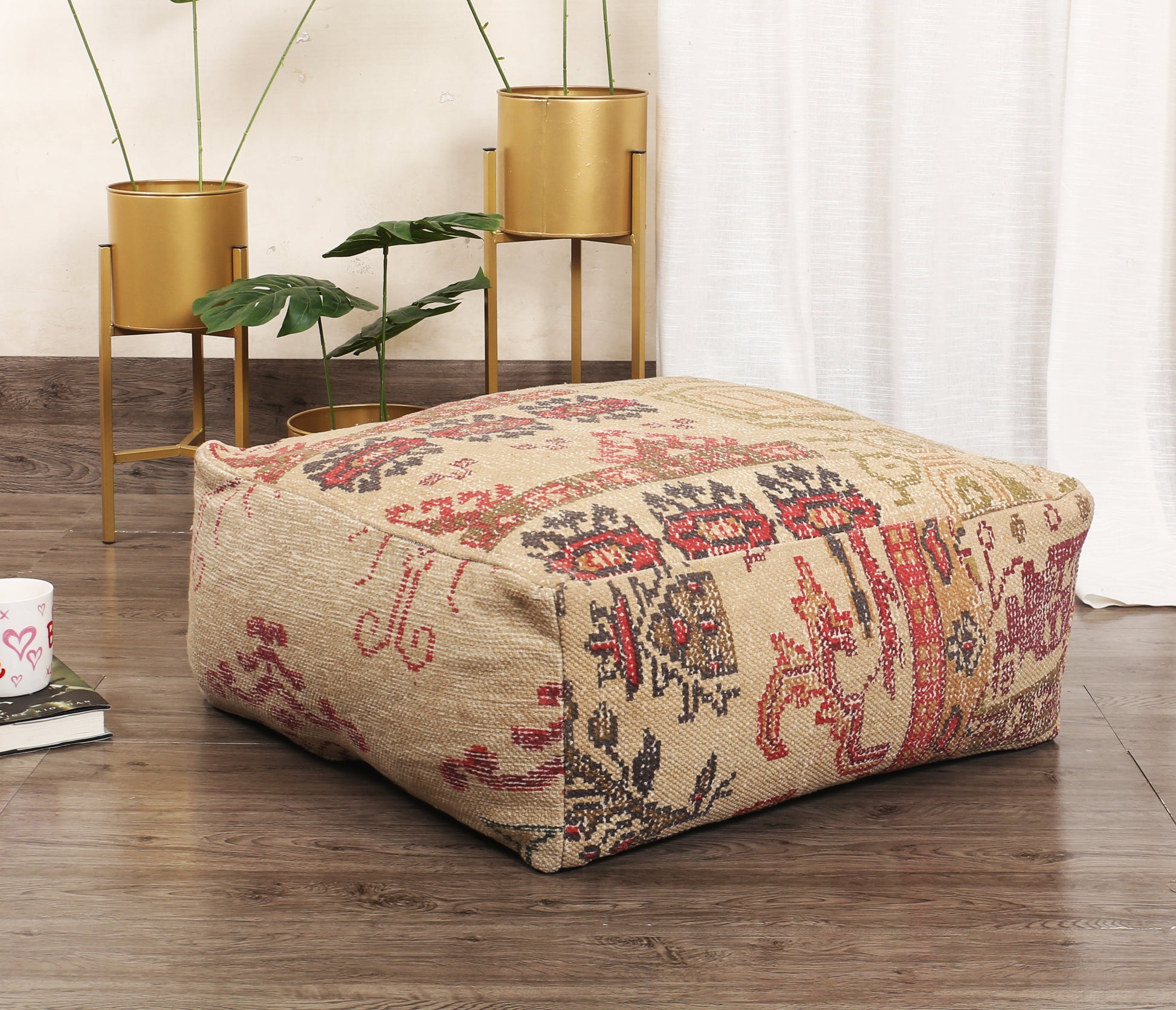 Accessorize any space with the cotton rug ottoman great for indoor or outdoor use, Ideal for distinguishing small spaces. Our pouf provides a soft footrest or additional seating for your family or guest wherever you need it.