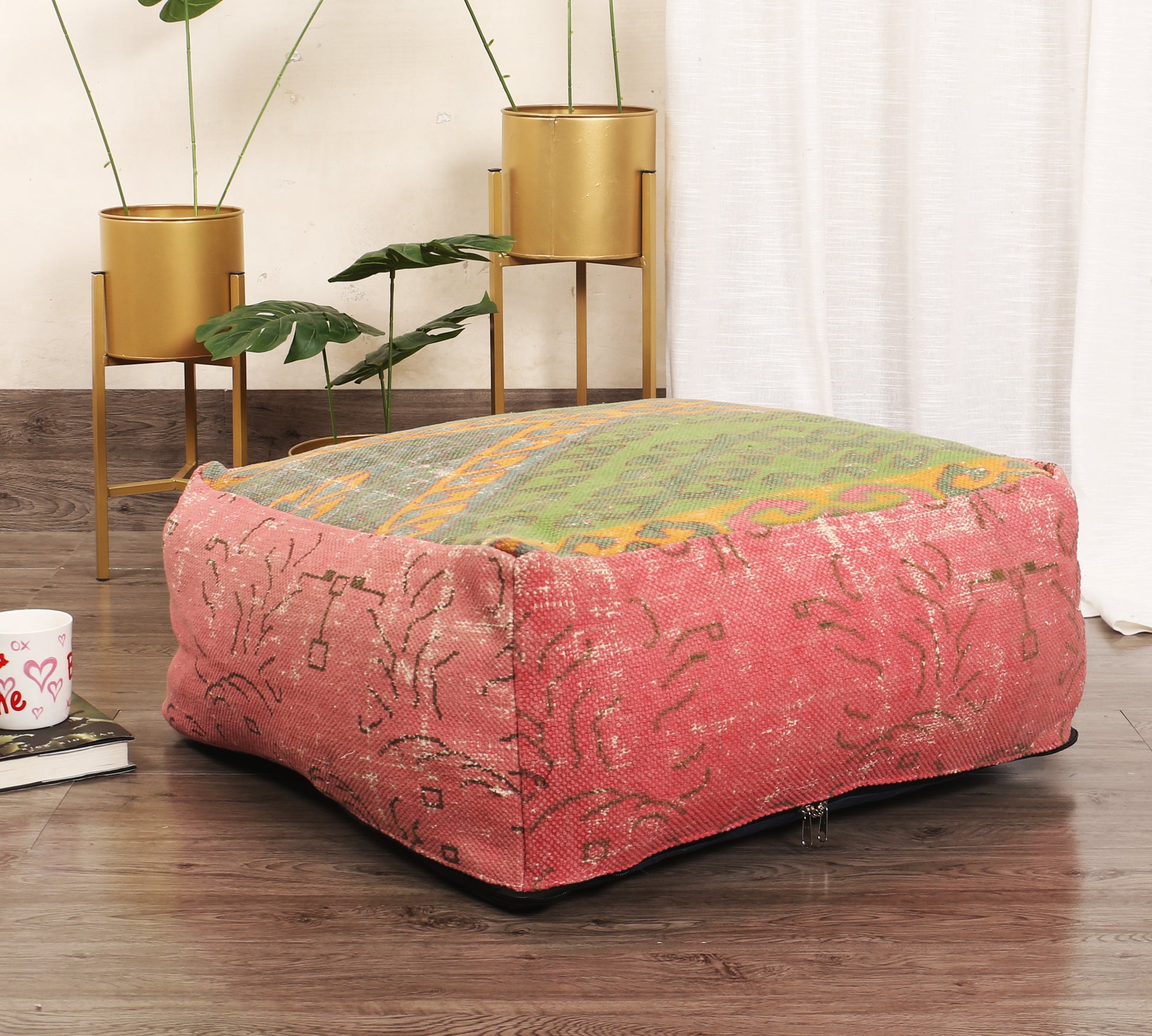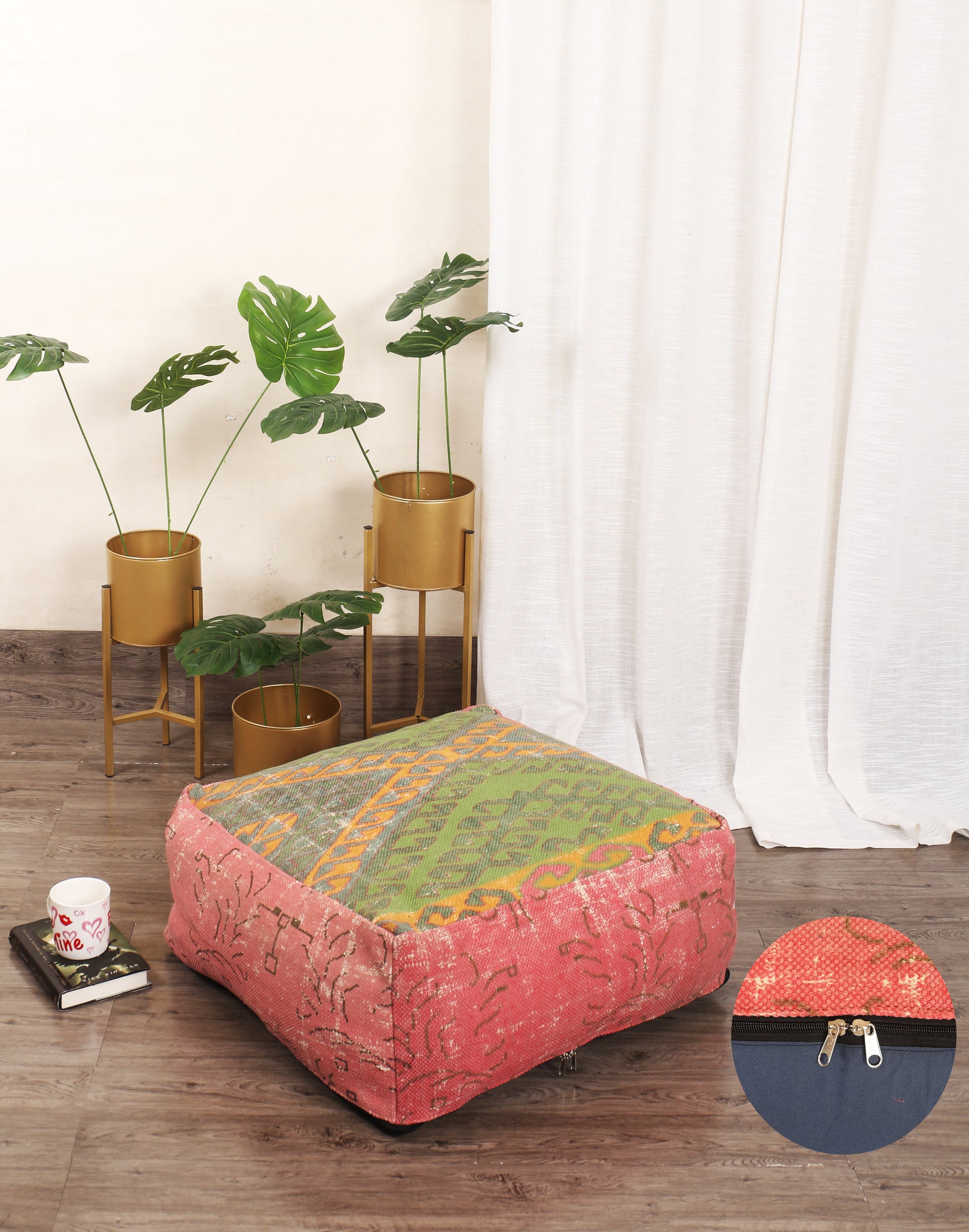 Accessorize any space with the cotton rug ottoman great for indoor or outdoor use, Ideal for distinguishing small spaces. Our pouf provides a soft footrest or additional seating for your family or guest wherever you need it.