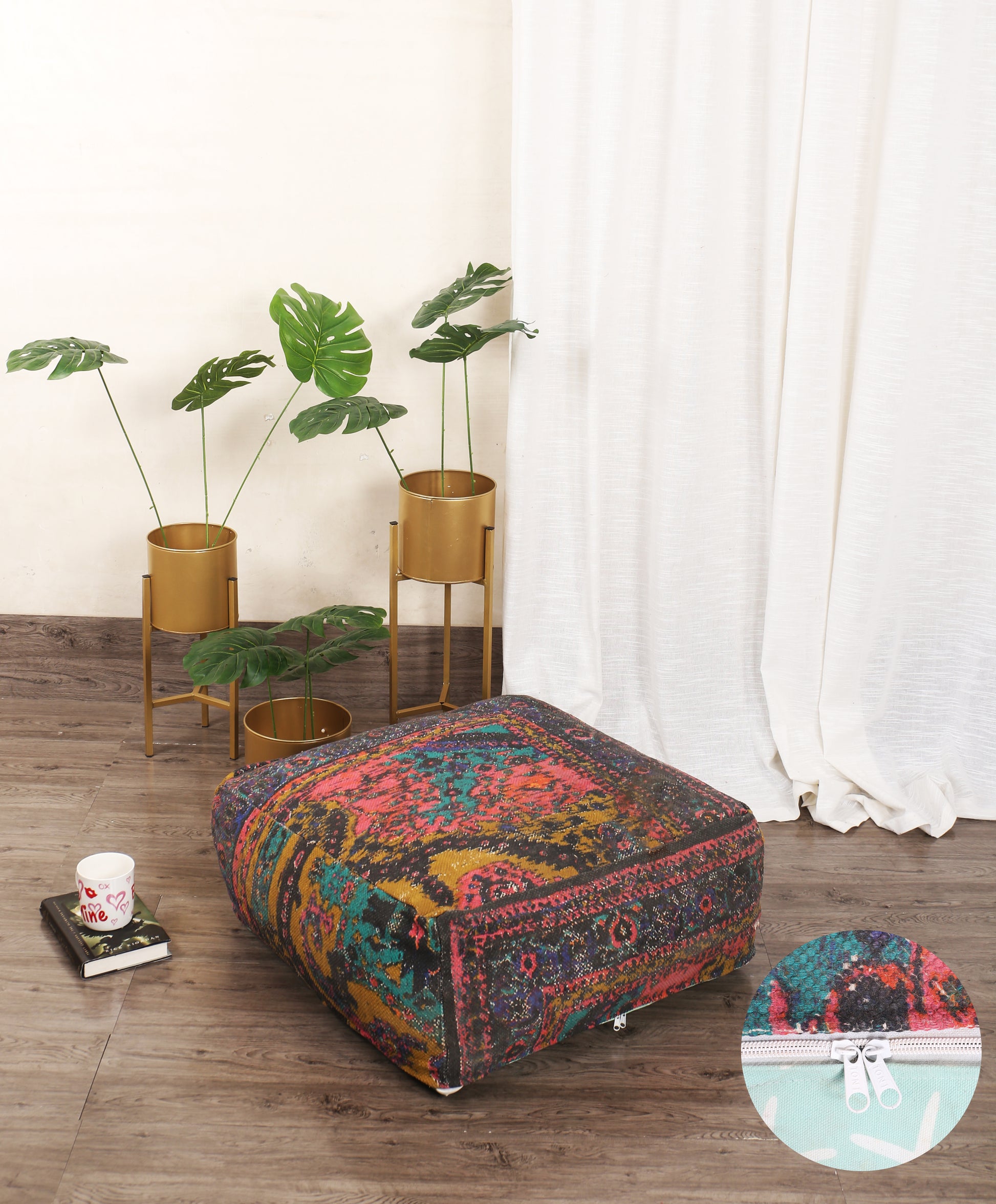 Accessorize any space with the cotton rug ottoman great for indoor or outdoor use, Ideal for distinguishing small spaces. Our pouf provides a soft footrest or additional seating for your family or guest wherever you need it.