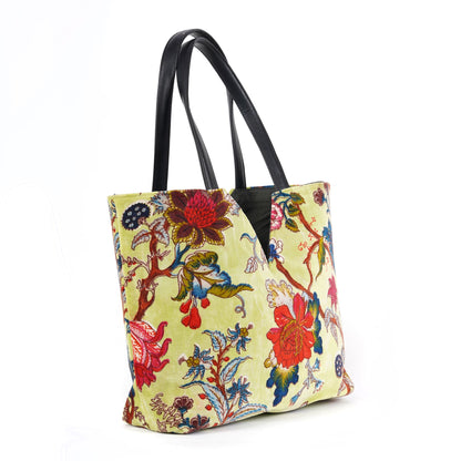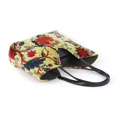 Tree of Life V Cut Velvet Hand Bag- Lime Green