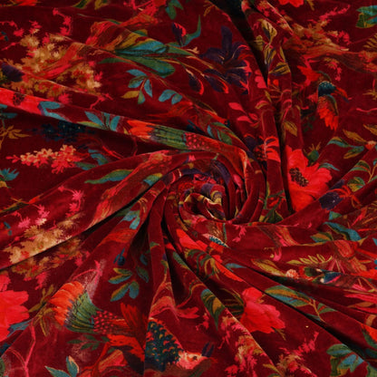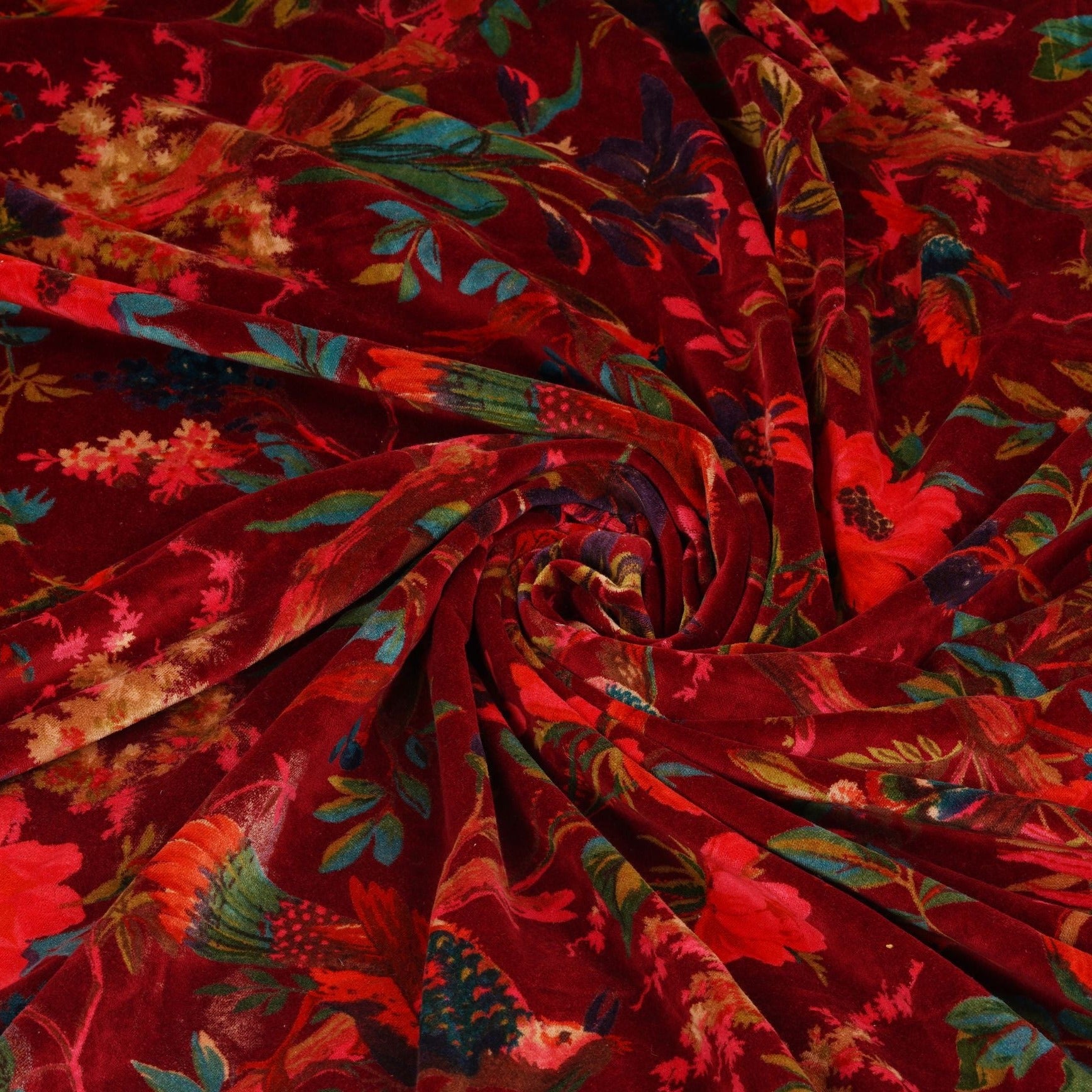 Limited time holiday sale Birds of Paradise Velvet fabric for upholstery- Maroon