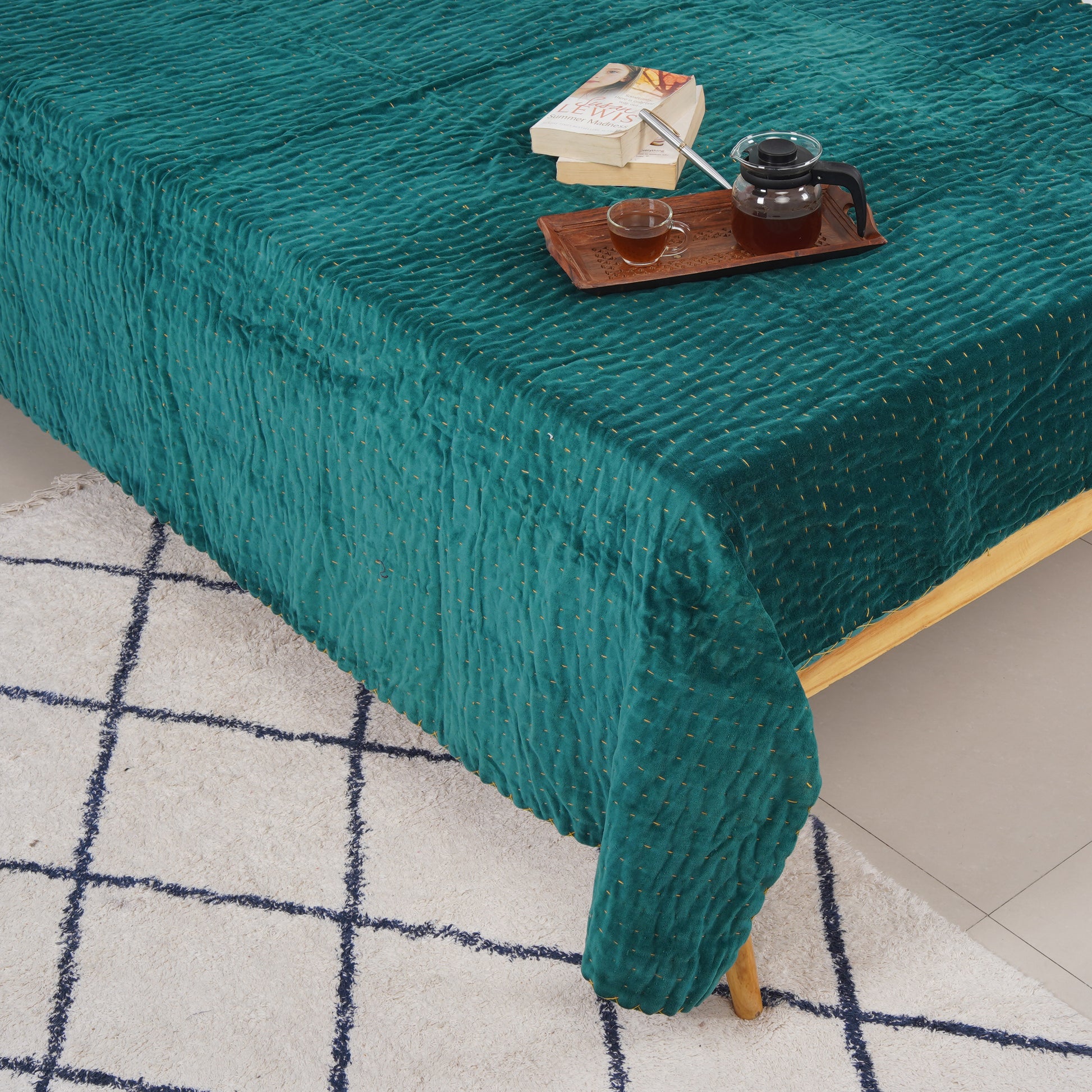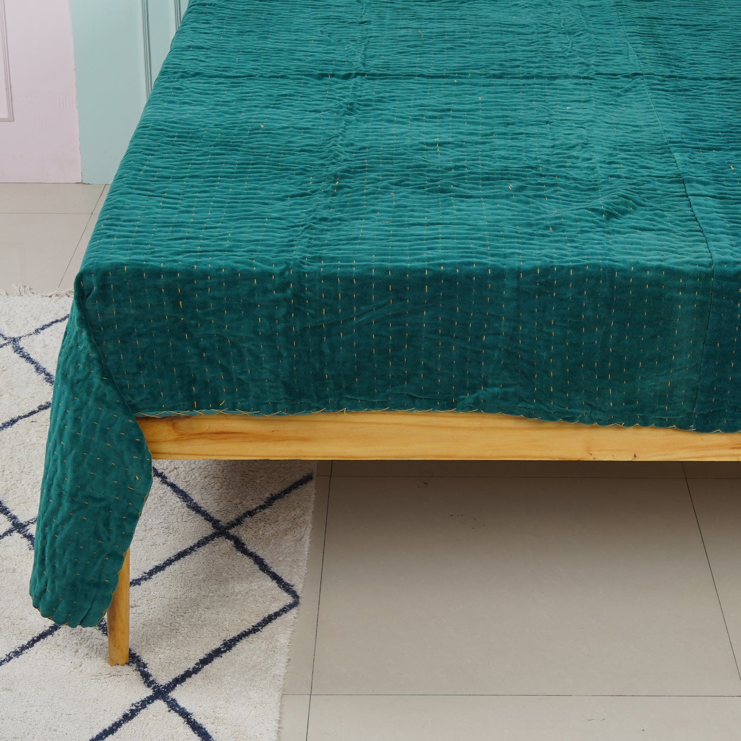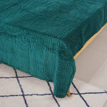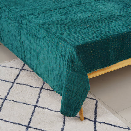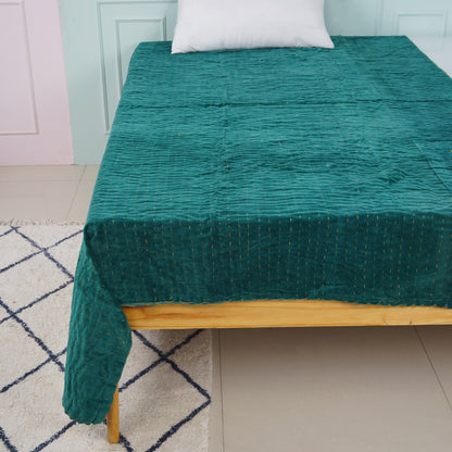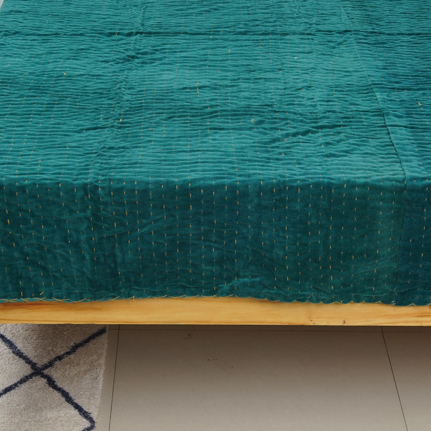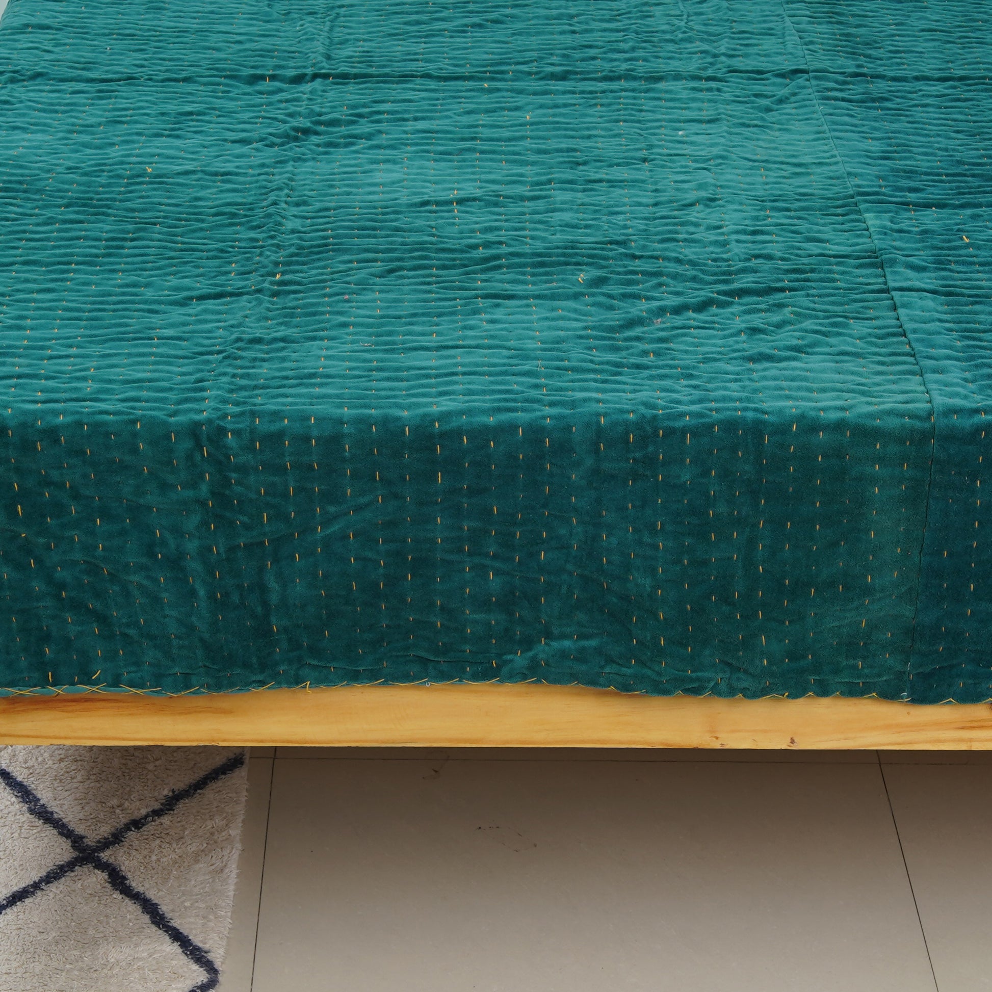 Kantha is age old hand weaving technique from indian villages. layers of fabric are stitched together in patchwork or plain form to form a thick quilted Bedspread that can be used as Bedcover, Blanket, Throw or AC Quilt.