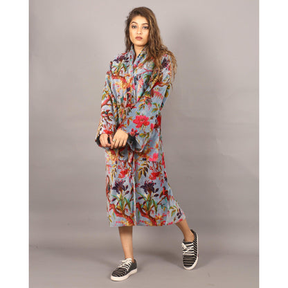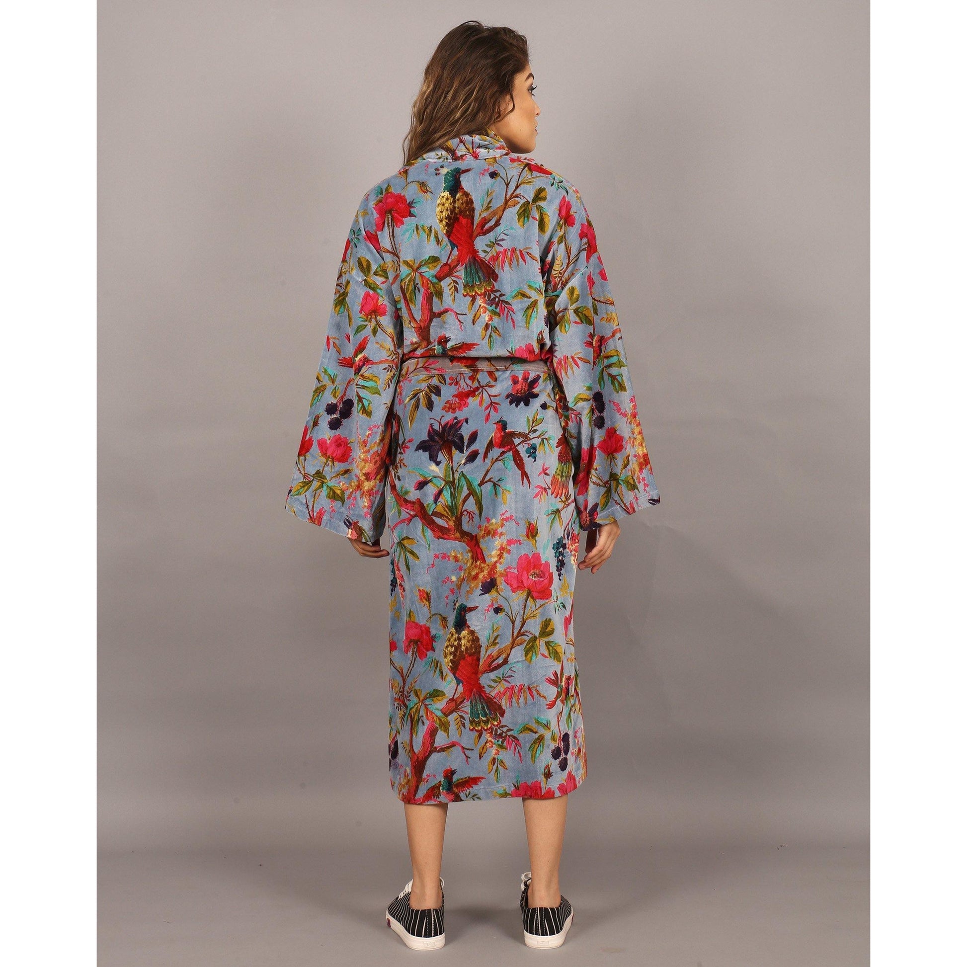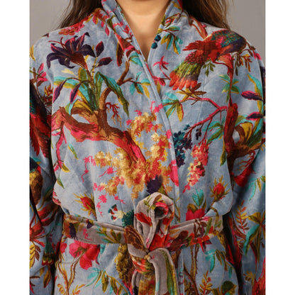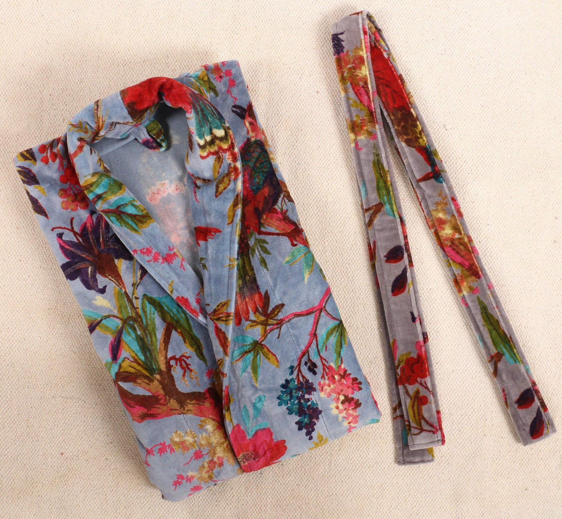 Velvet Kimono/ Jacket-Birds of Paradise-Blue