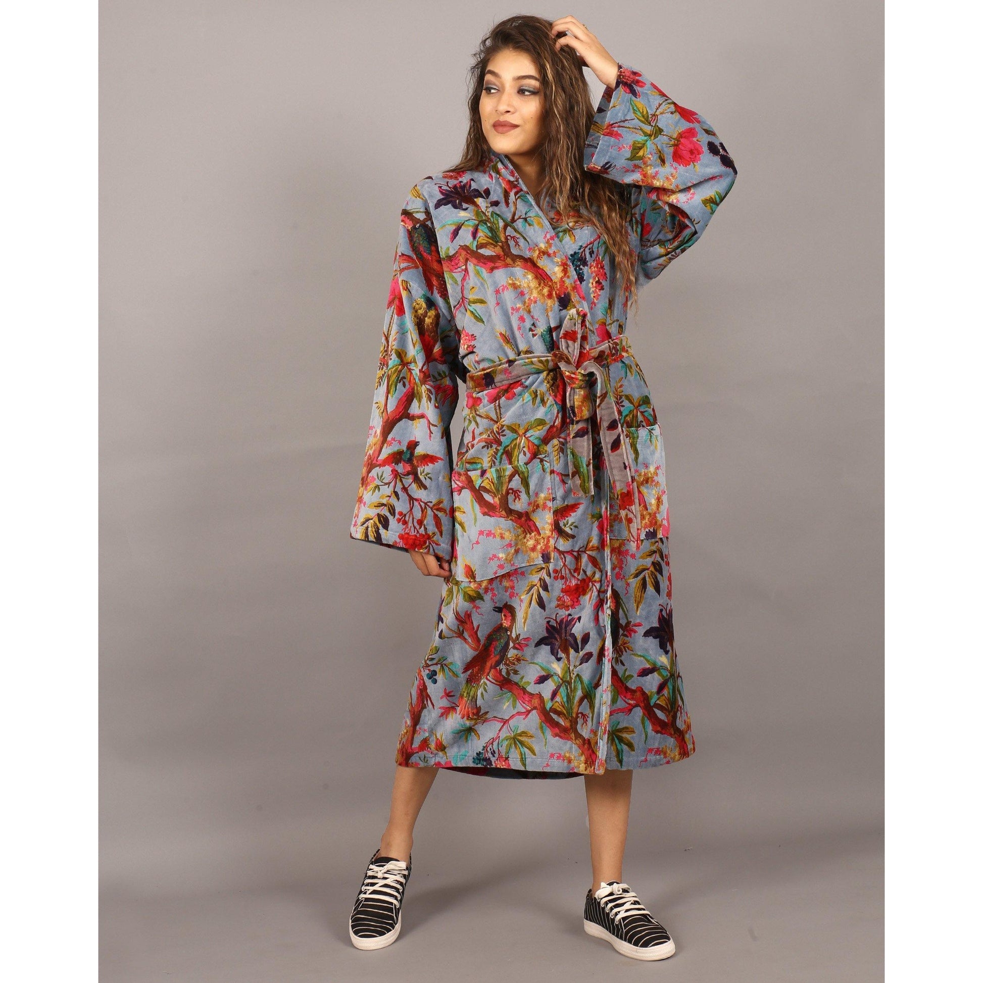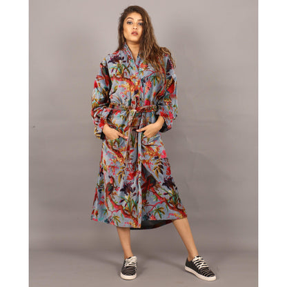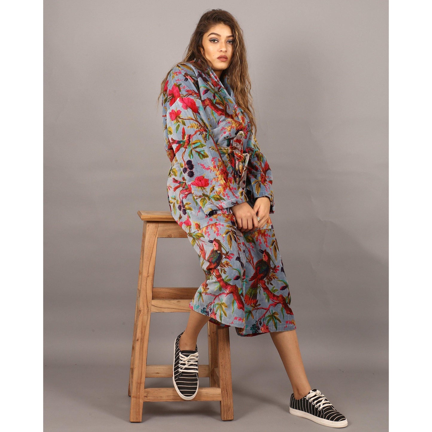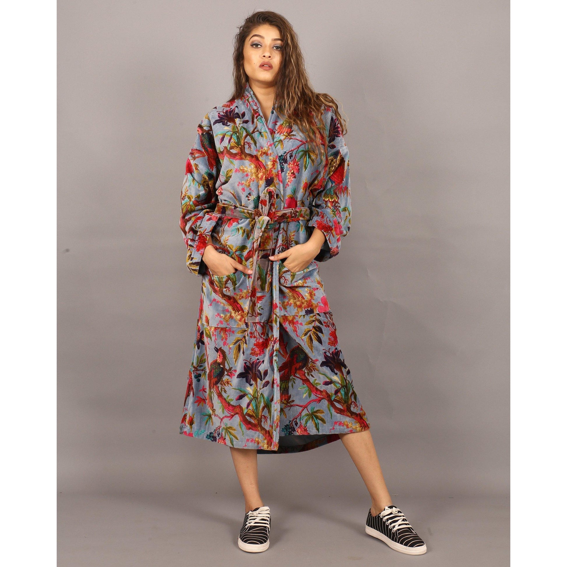 Velvet Kimono/ Jacket-Birds of Paradise-Blue