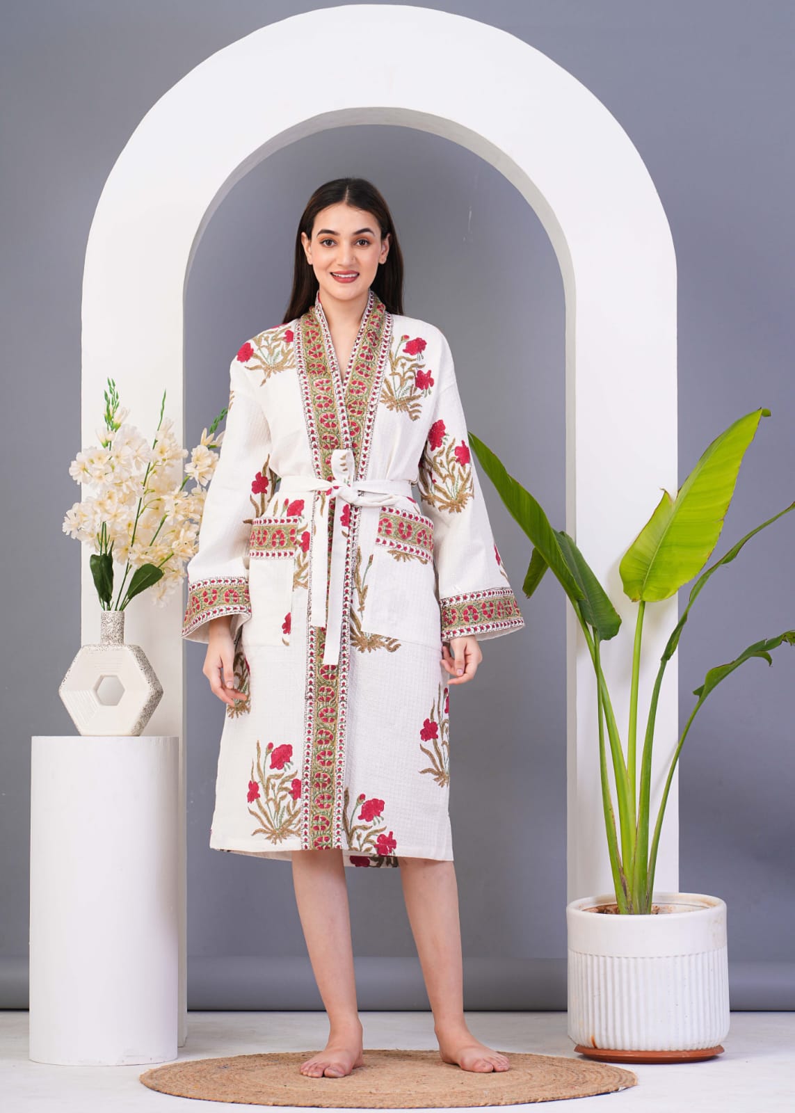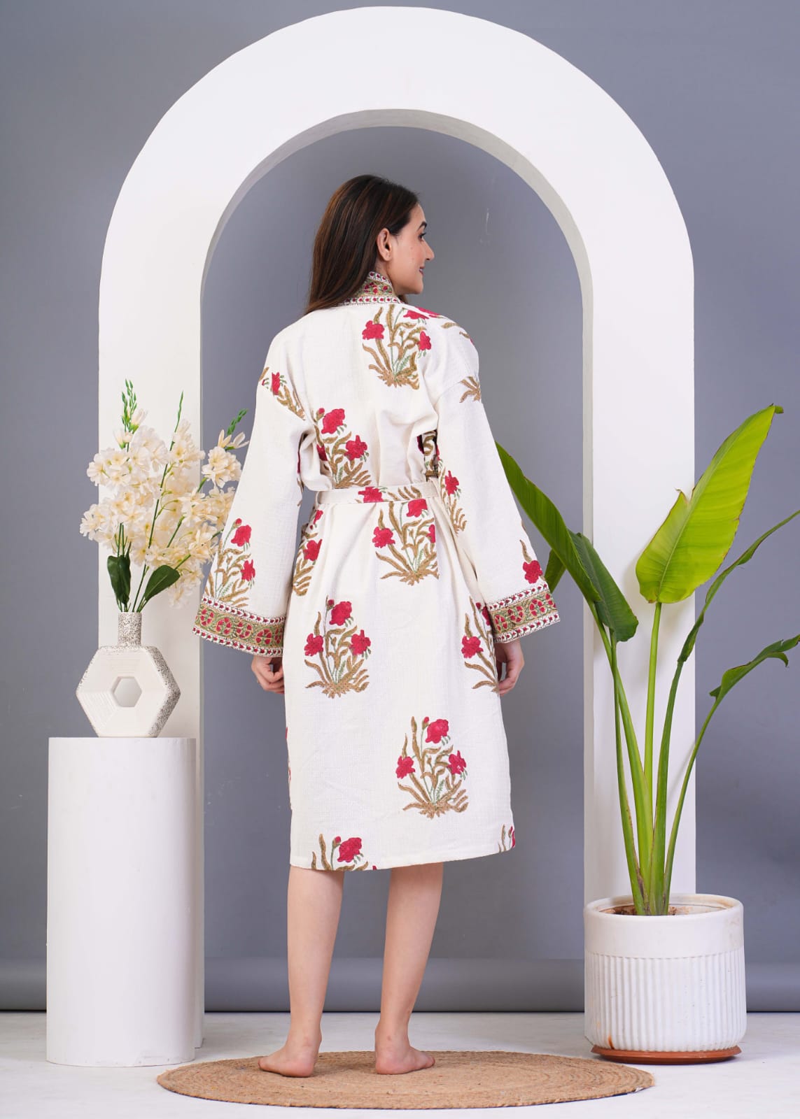 Waffle knit printed kimonos/ Robe/ Lounge Wear red floral