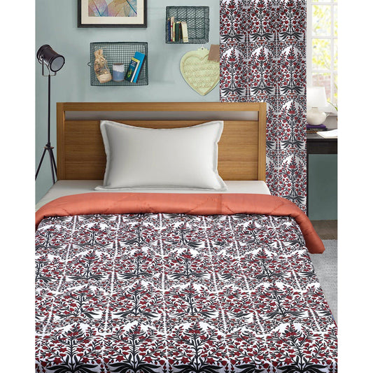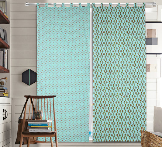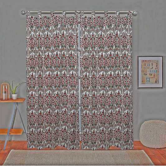 8 Feet Floral Blocks - Pink Red Curtain Pair-sale
