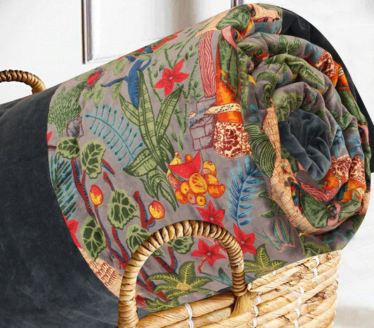 Velvet Quilt Frida Kahlo Grey Inspired with border