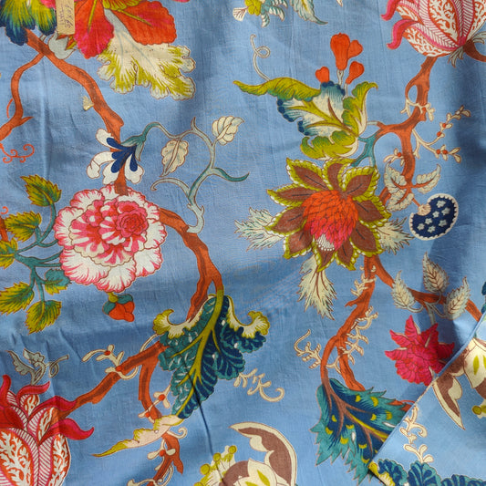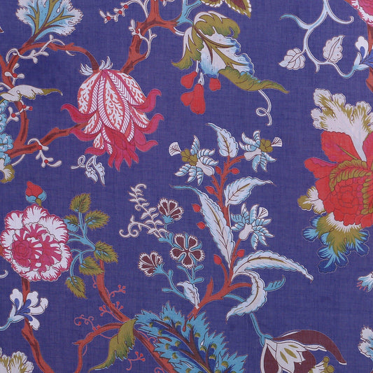 Tree of Life Cambric Curtain Pair Royal Blue