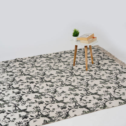 These Rugs are Handwoven in rural areas of India and then hand printed with designs that are inspired by abstract ideas all around us. They are pre washed for durability. There can be certain irregularities in the print which makes it more appealing as it signifies human effort in executing the product.