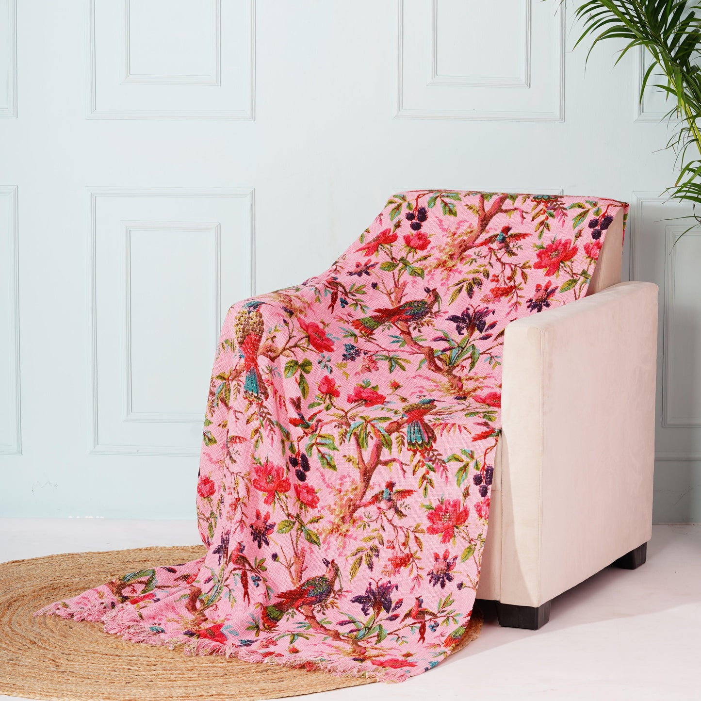 Birds of Paradise TNT Slub Sofa throw- Pink