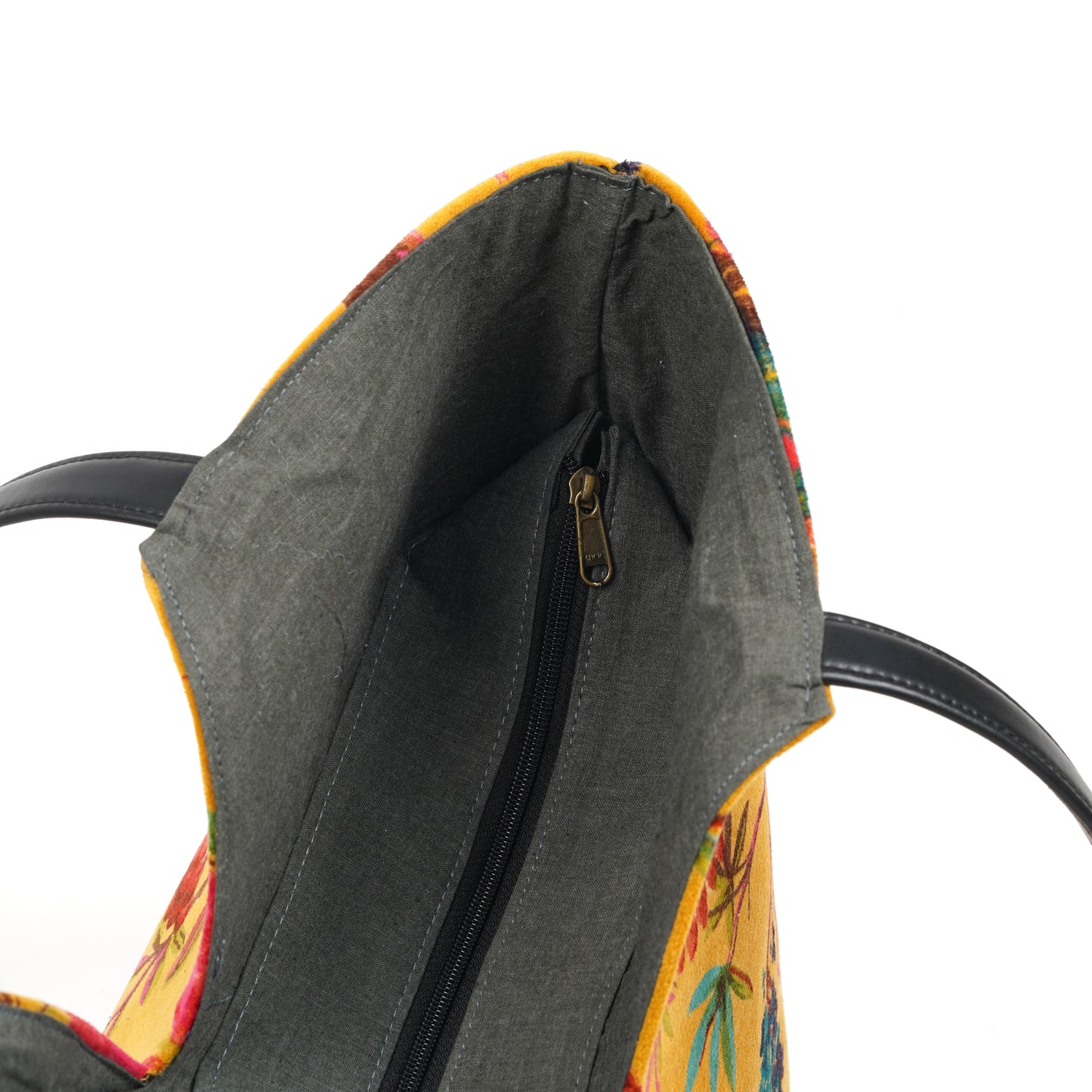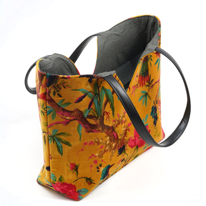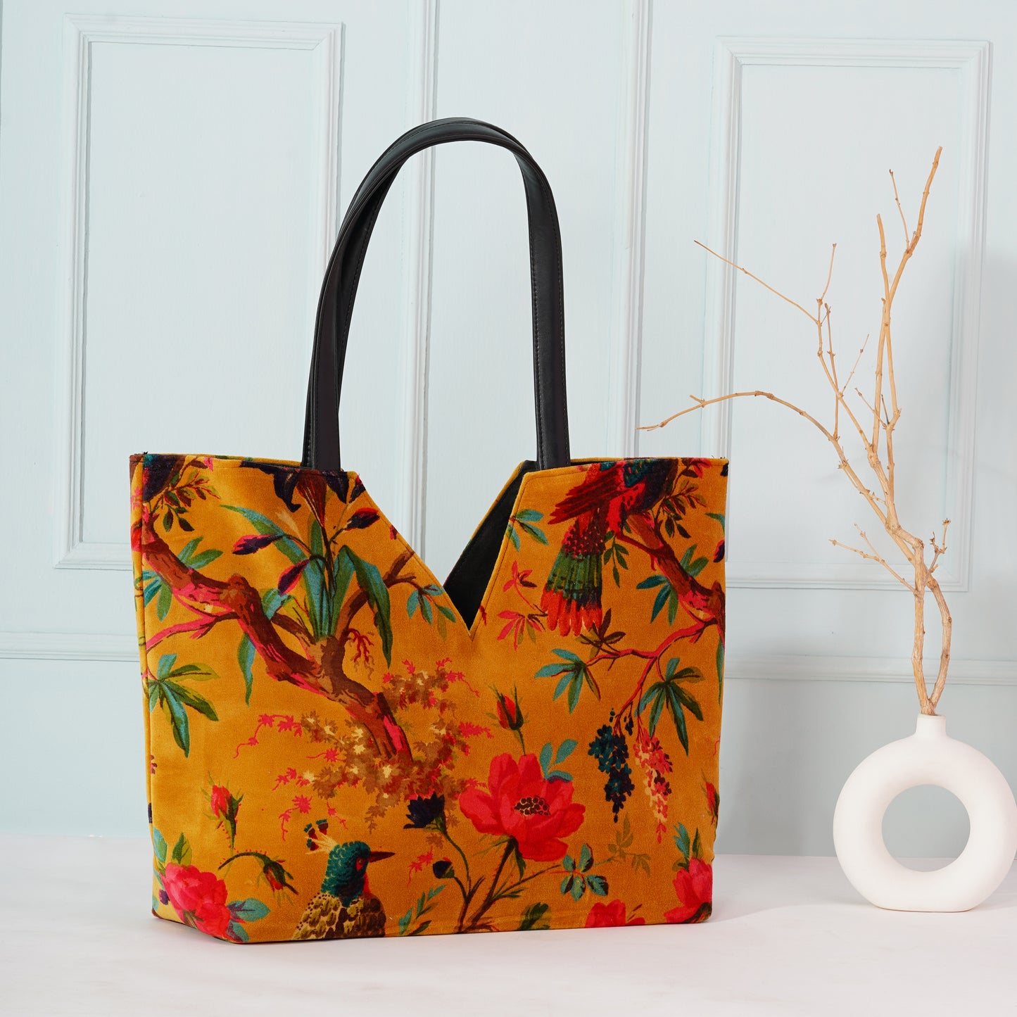 Birds of Paradise V Cut Velvet Hand Bag- Mustard Yellow