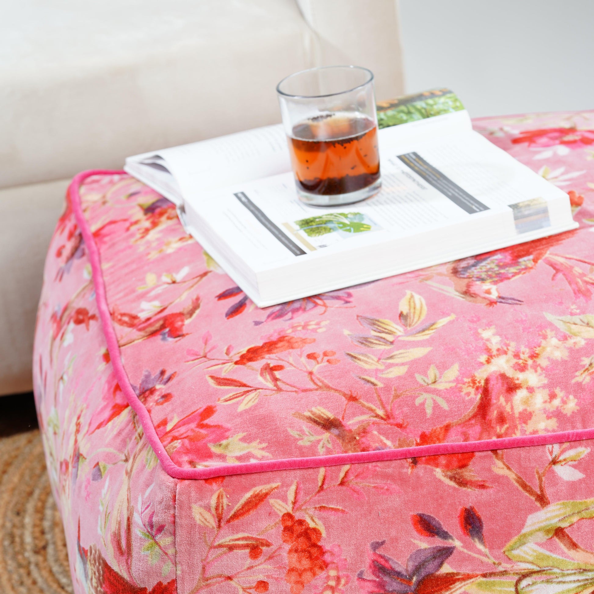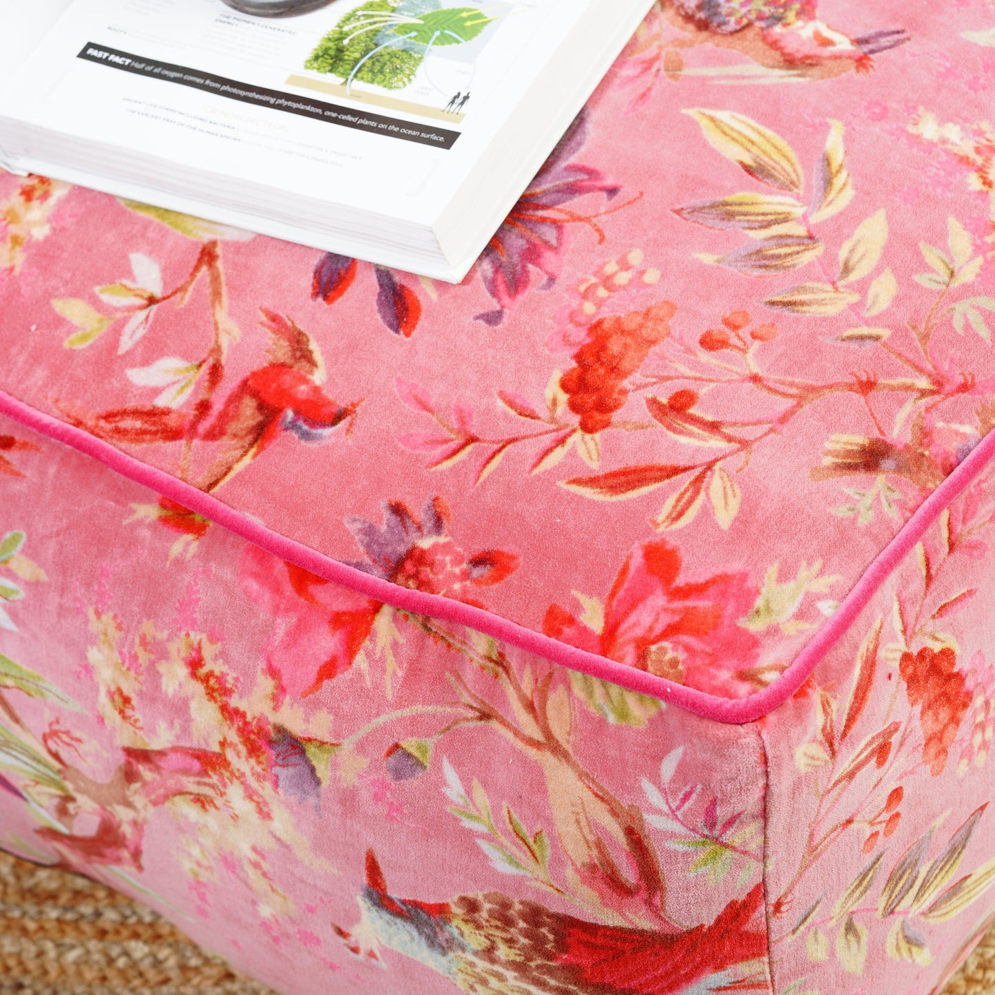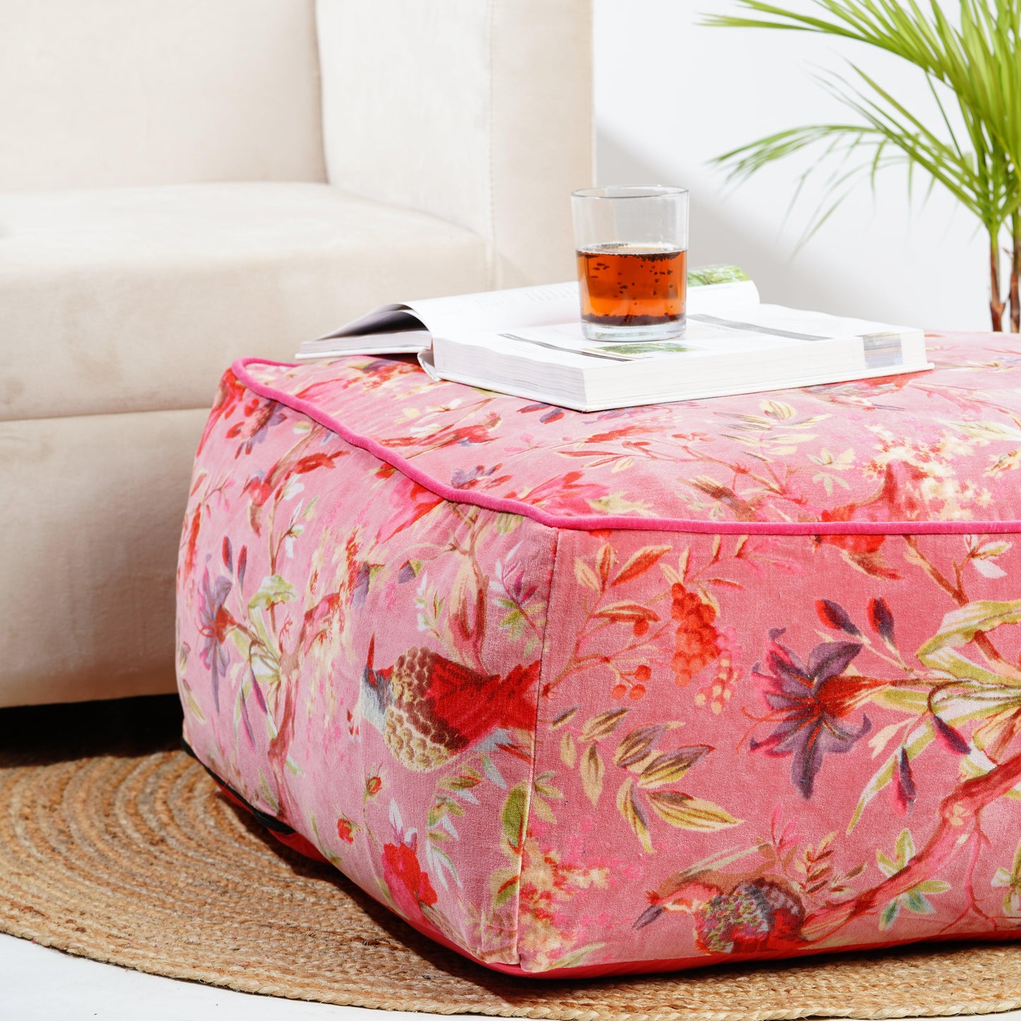 Birds of Paradise Velvet Square Ottoman / bean bag -Pink