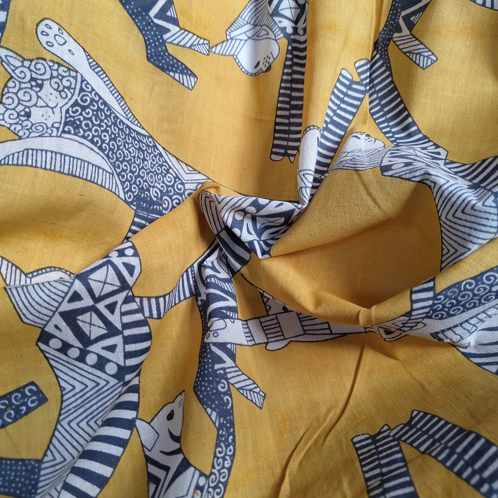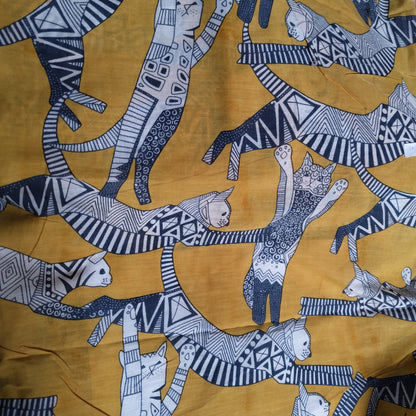 Cat Party Yellow Cotton cambric 44 inches width Fabric per meter