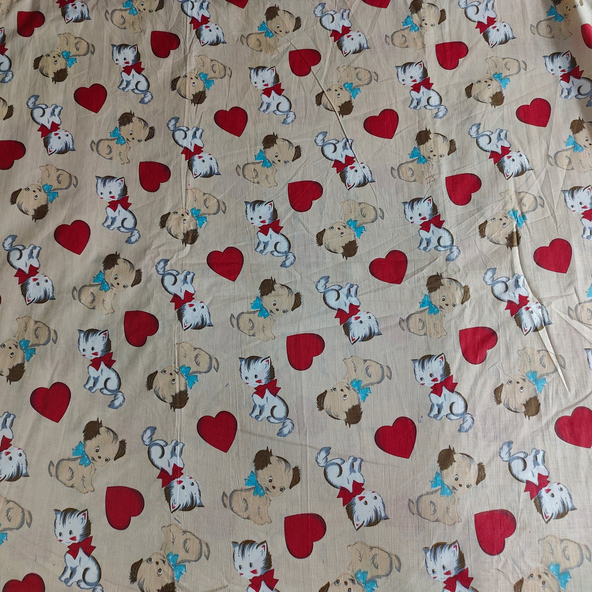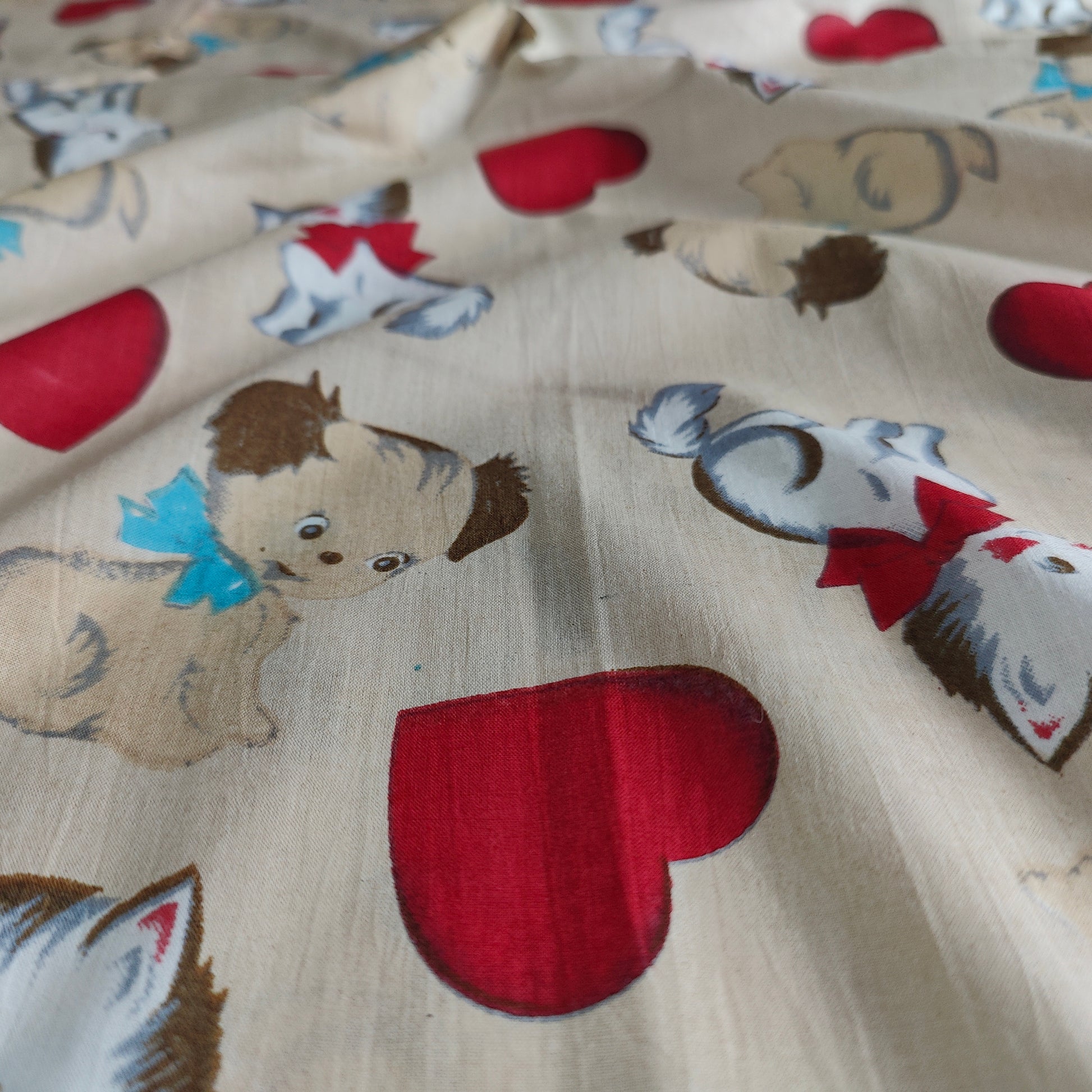 Puppy Love Beige Cotton cambric 44 inches width Fabric per meter
