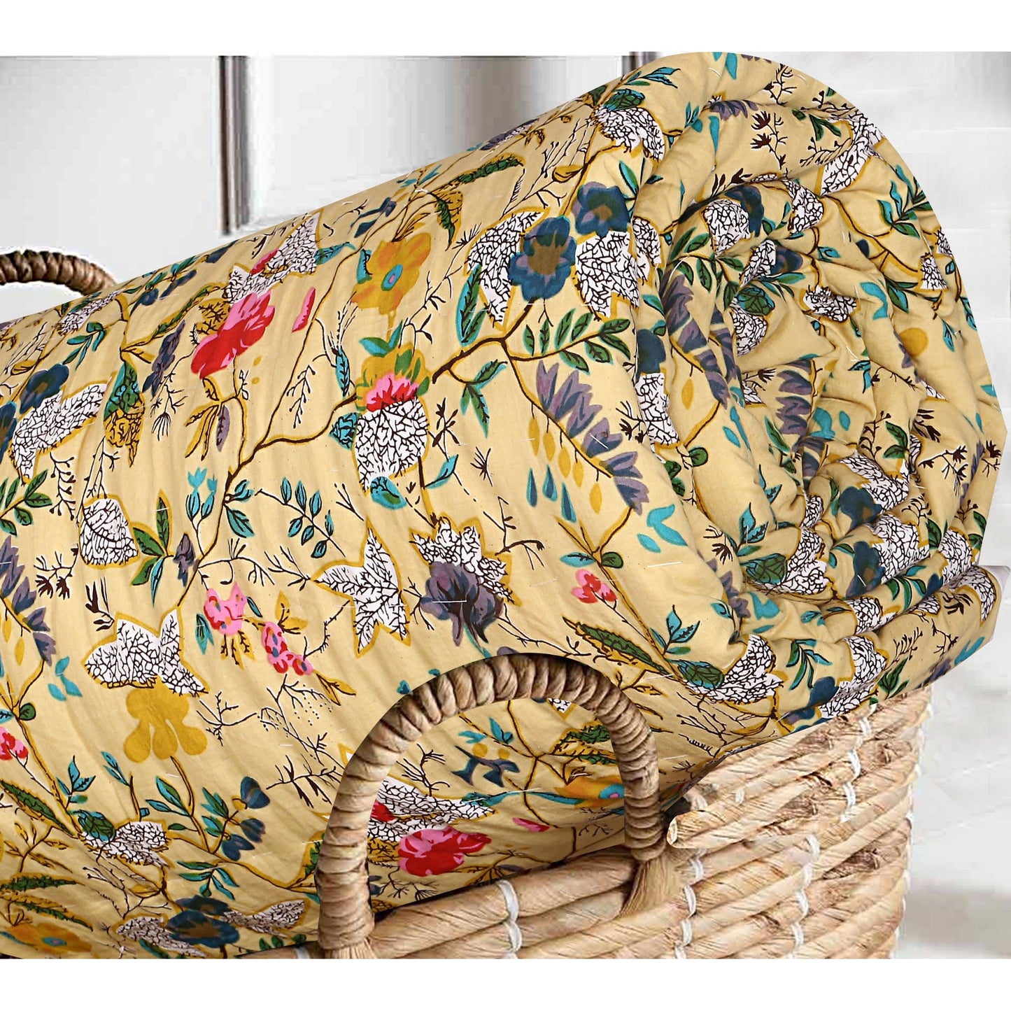 Floral Jaipuri Razai Yellow