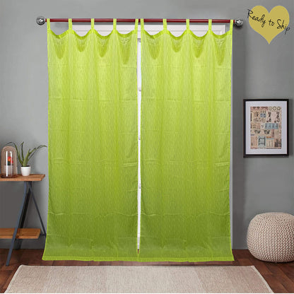 Lime Green and Gold Print Curtain Pair 7ft Door-sale