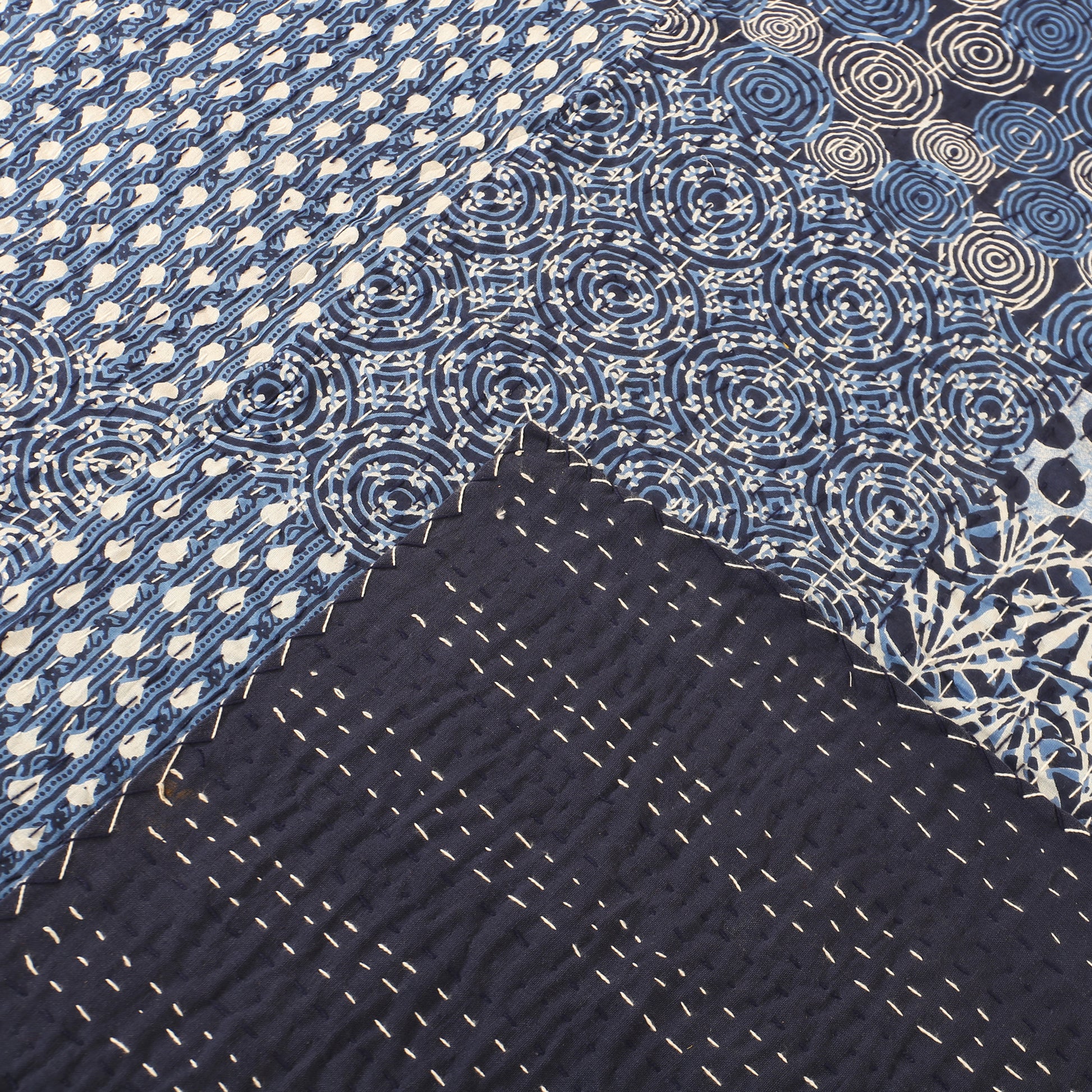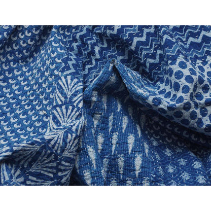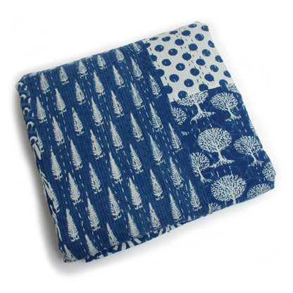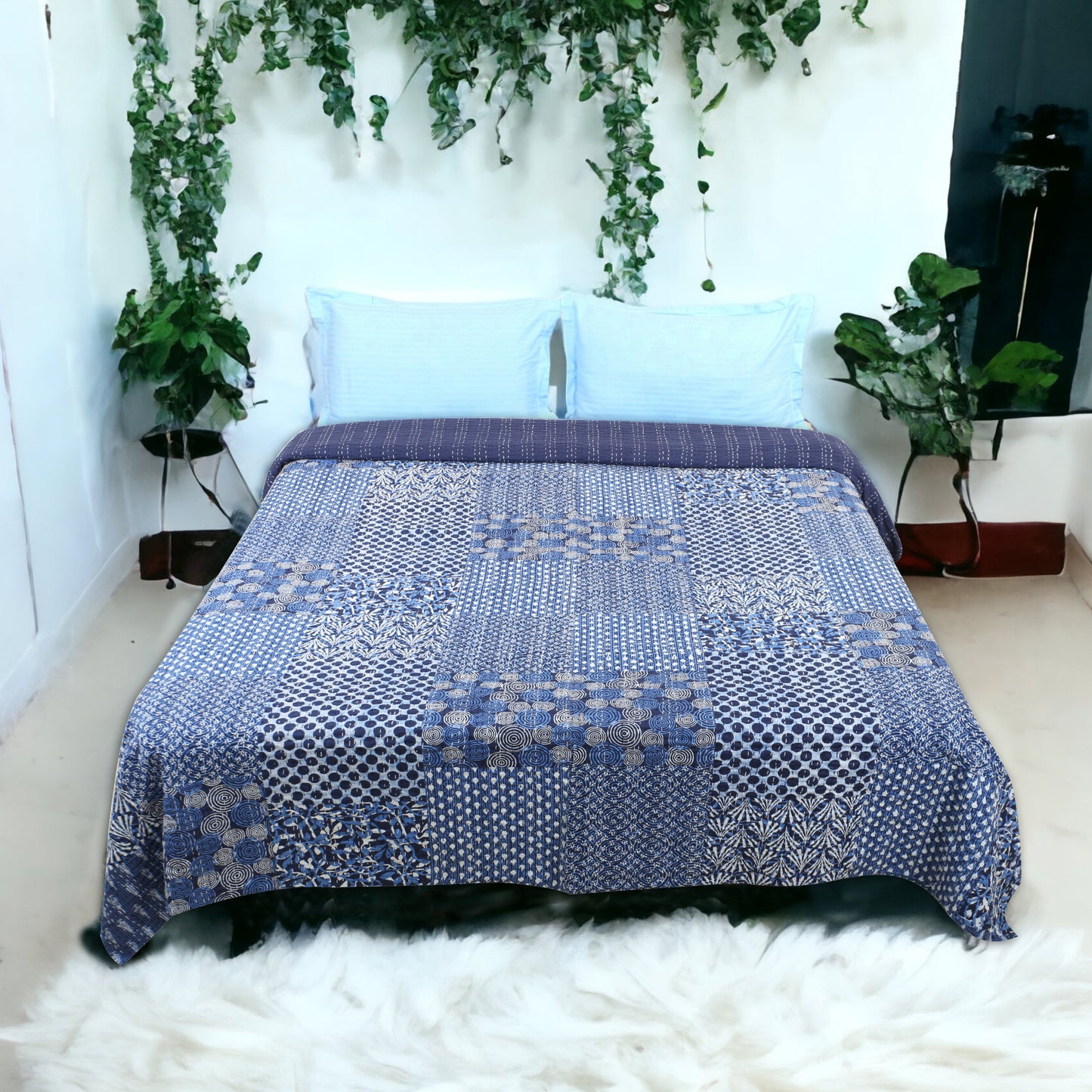 Kantha is age old hand weaving technique from indian villages. layers of fabric are stitched together in patchwork or plain form to form a thick quilted Bedspread that can be used as Bedcover, Blanket, Throw or AC Quilt.