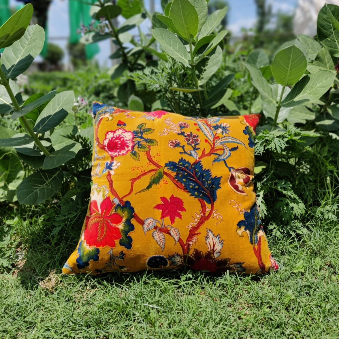 Tree of Life Velvet cushion cover- Mustard Yellow