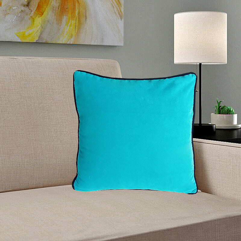 Sky Blue Velvet Cushion Cover with piping