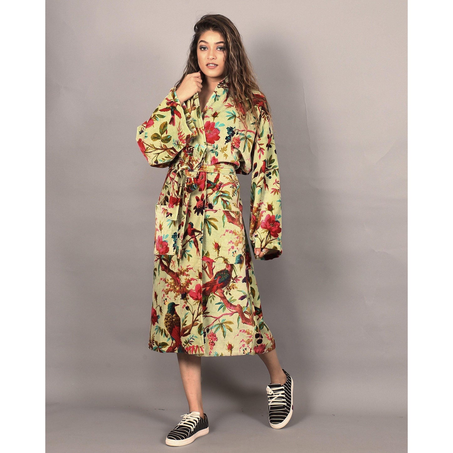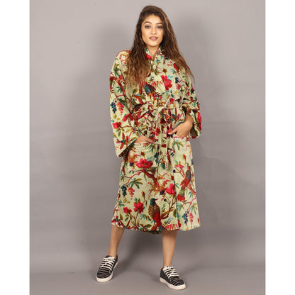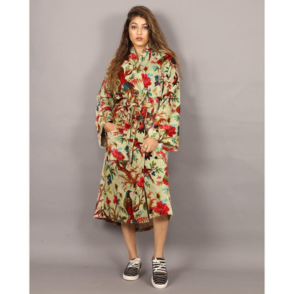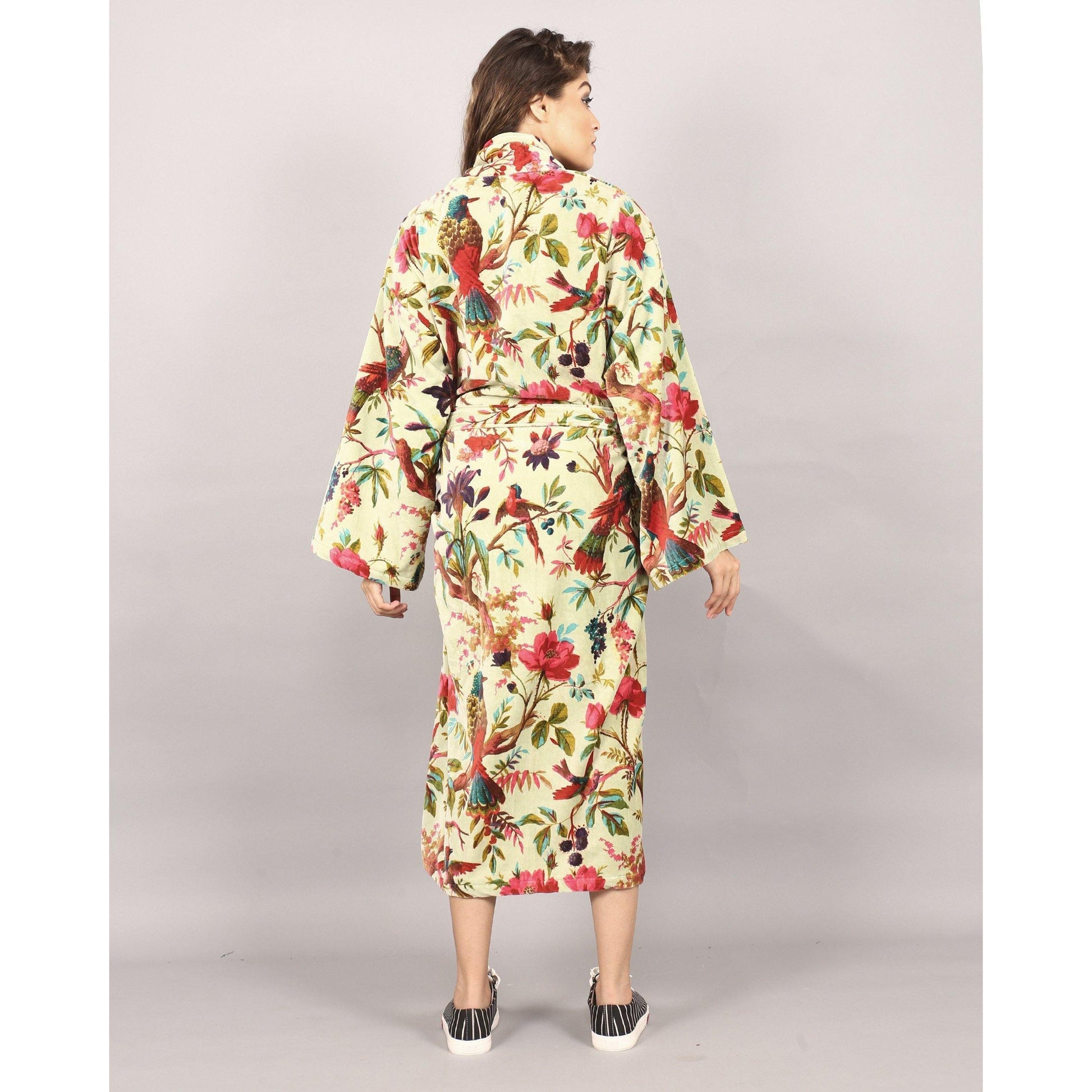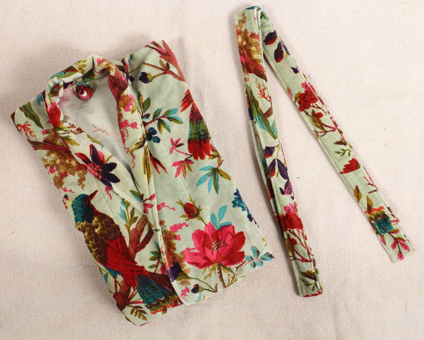 Velvet Kimono/ Jacket-Birds of Paradise-Light Green
