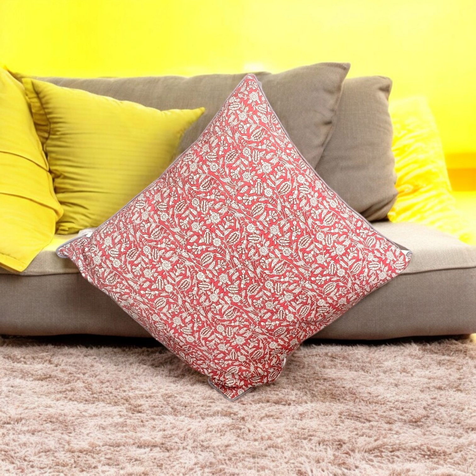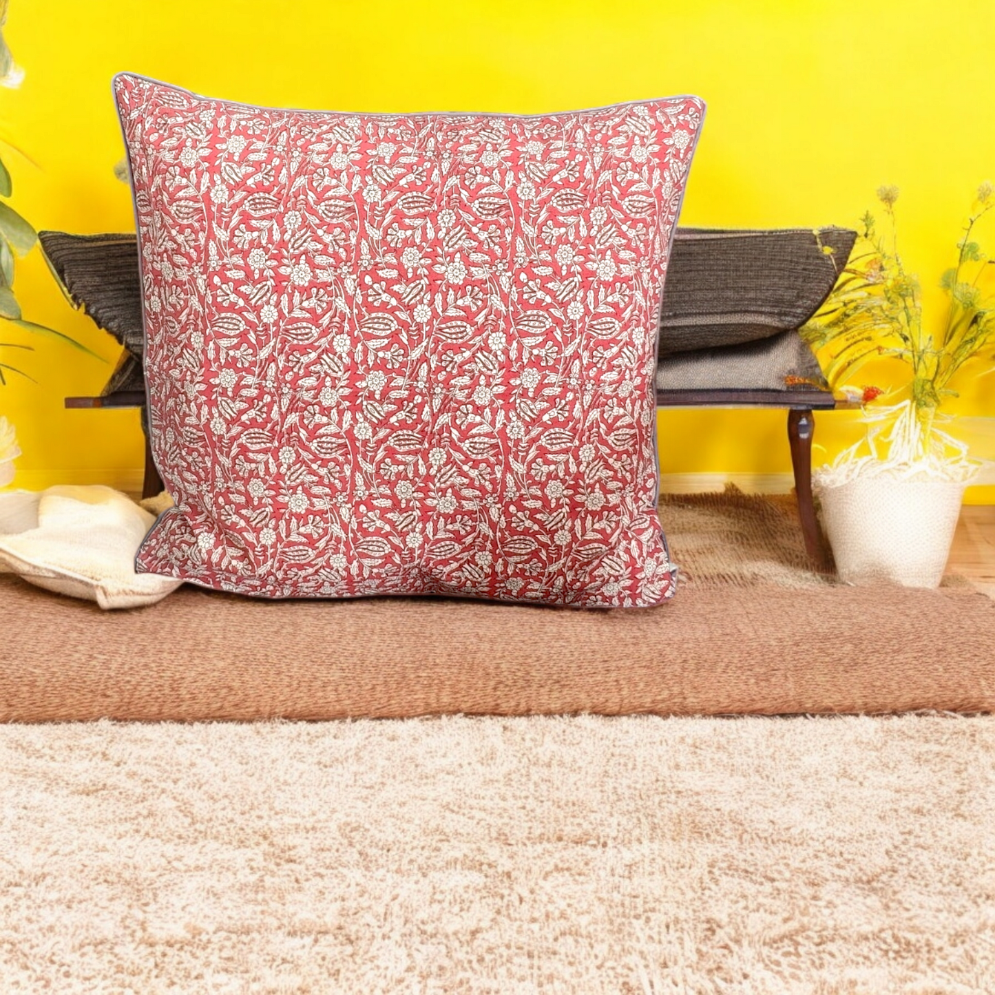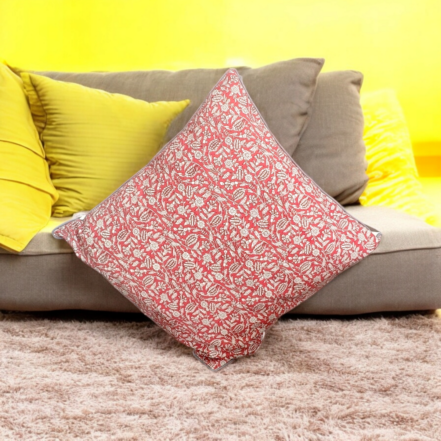 Introducting our 16" cotton cushion cover, featuring a beautiful floral design inspired by the traditional hand block printing process. Made from 100% cotton, this cover adds a touch of luxury to any living space. Its grey piping and top zip ensure easy removal and washing, while the off-white backing provides feeling of warmth. Perfect for adding a pop of color and style to your couch or any cushion measuring 16 inches.