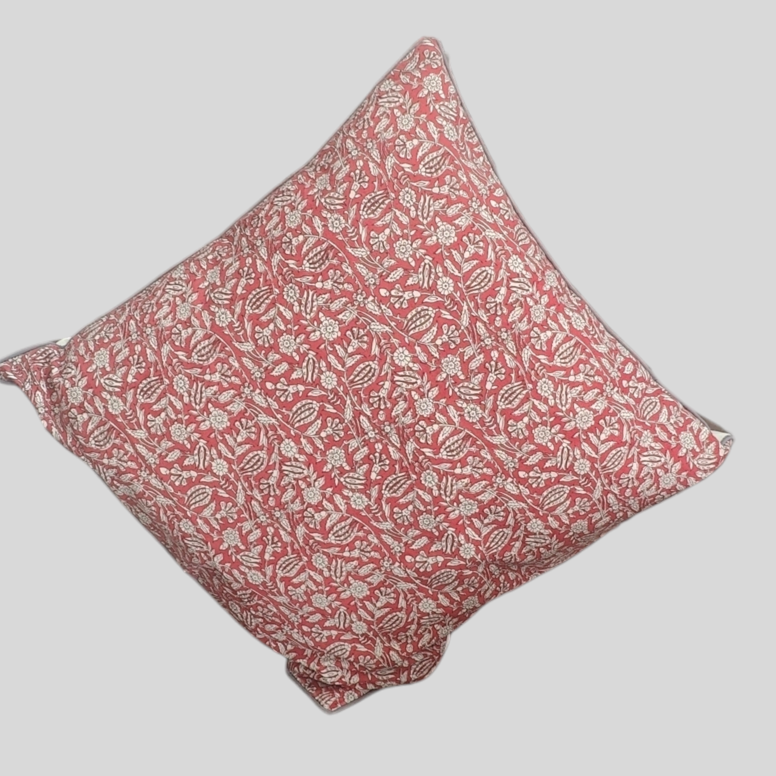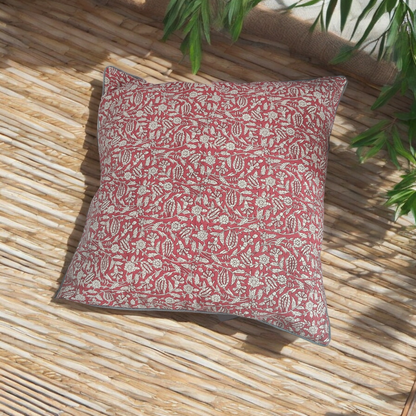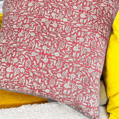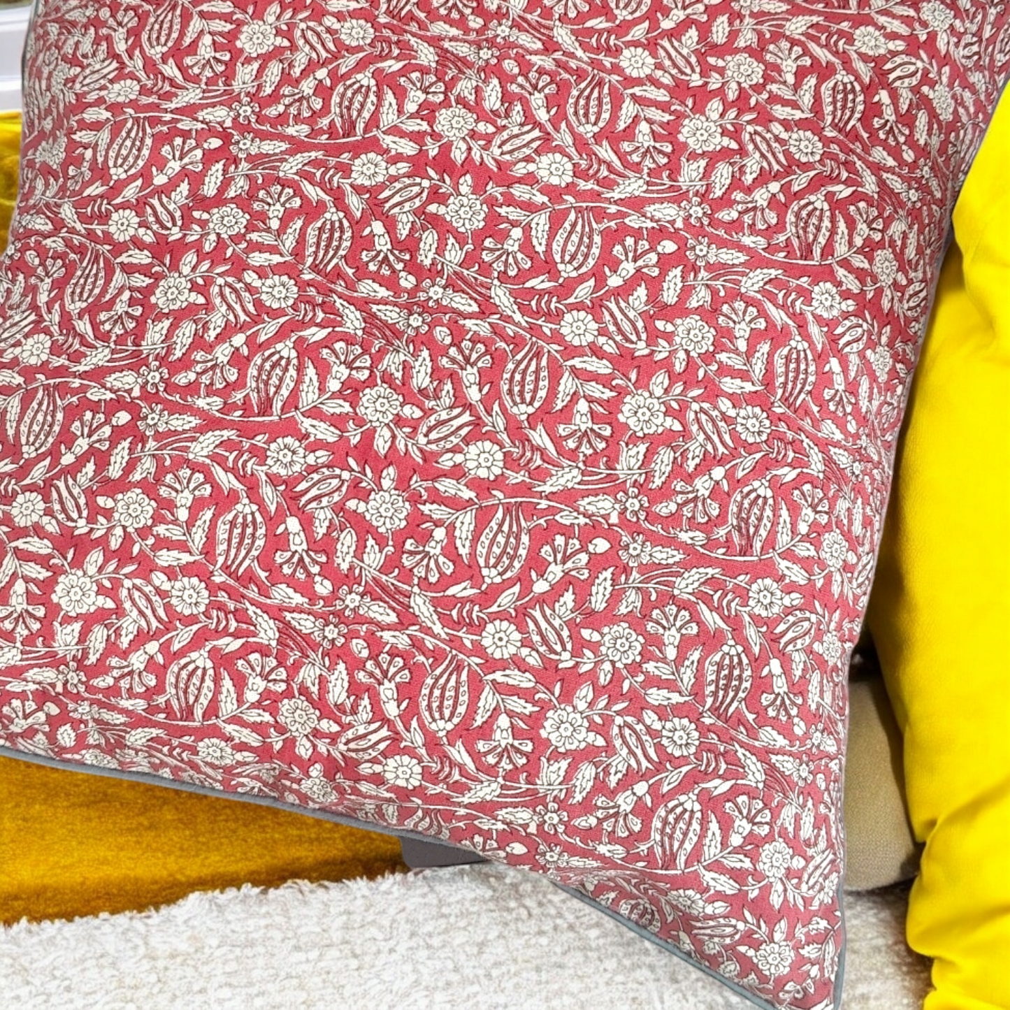 Introducting our 16" cotton cushion cover, featuring a beautiful floral design inspired by the traditional hand block printing process. Made from 100% cotton, this cover adds a touch of luxury to any living space. Its grey piping and top zip ensure easy removal and washing, while the off-white backing provides feeling of warmth. Perfect for adding a pop of color and style to your couch or any cushion measuring 16 inches.