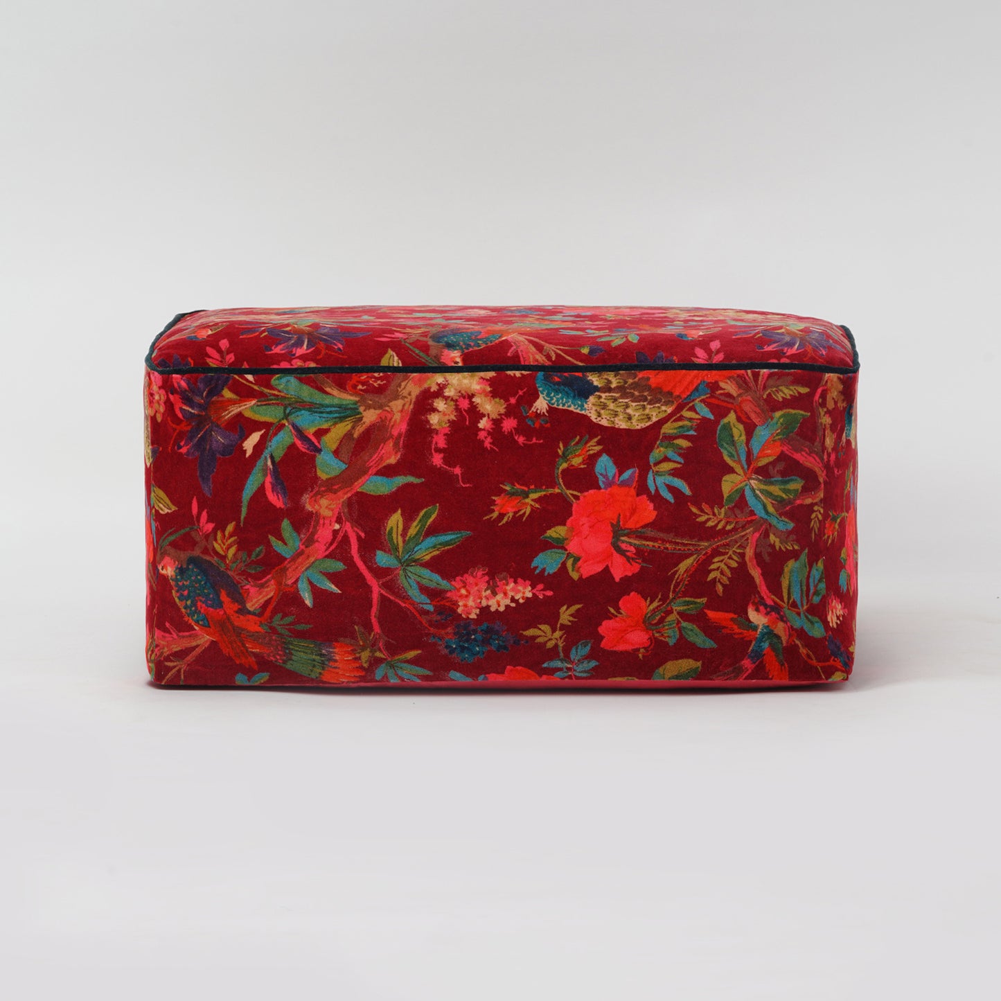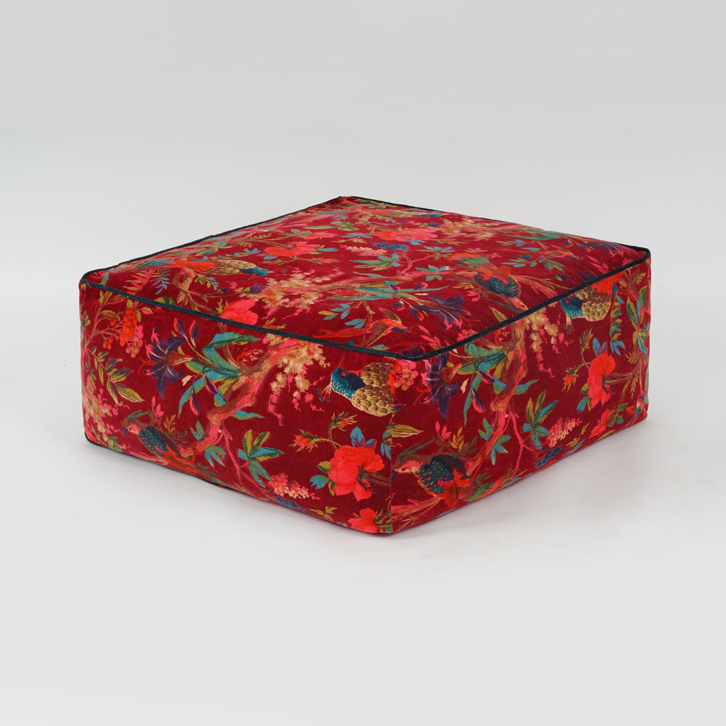 Birds of Paradise Velvet Square Ottoman / bean bag -Maroon