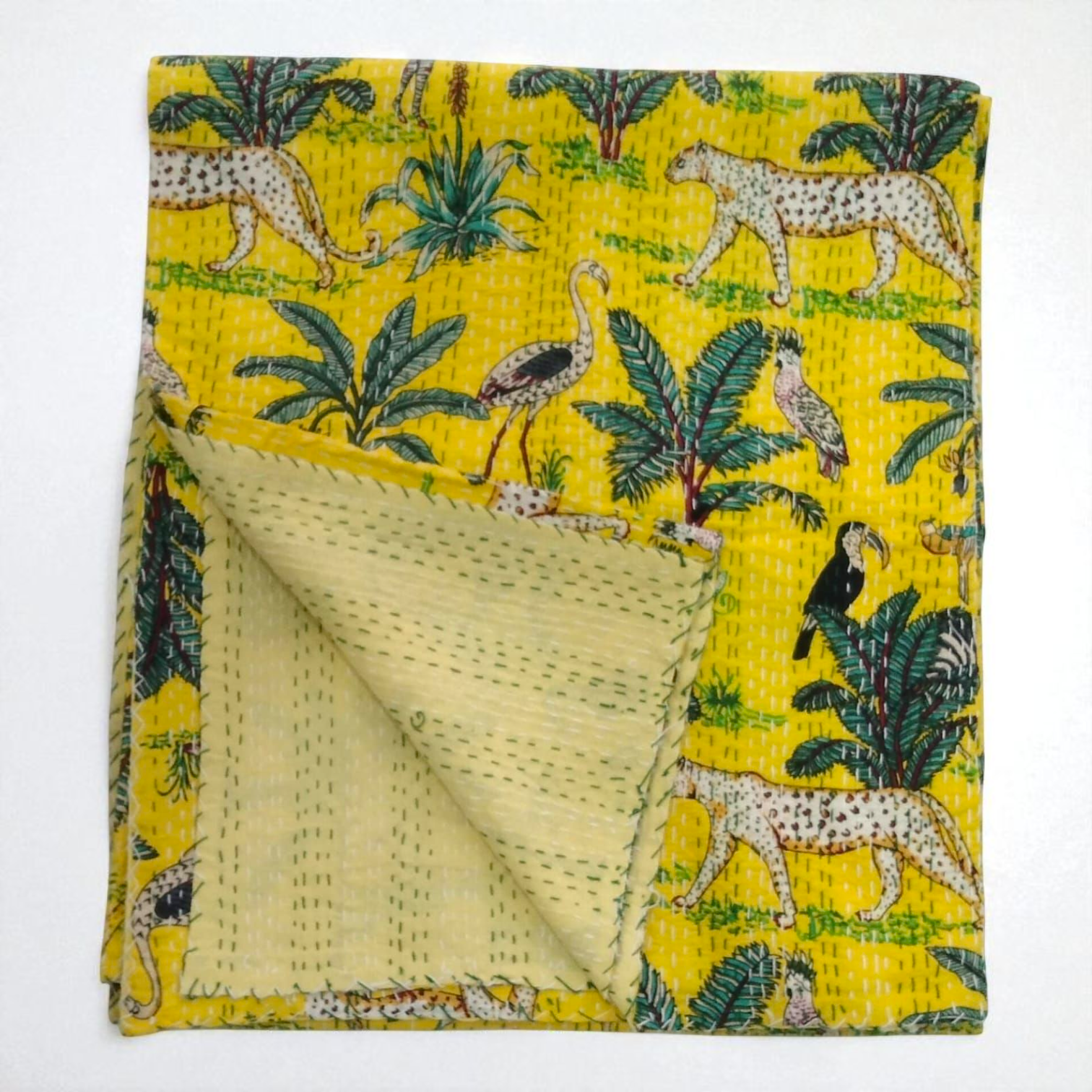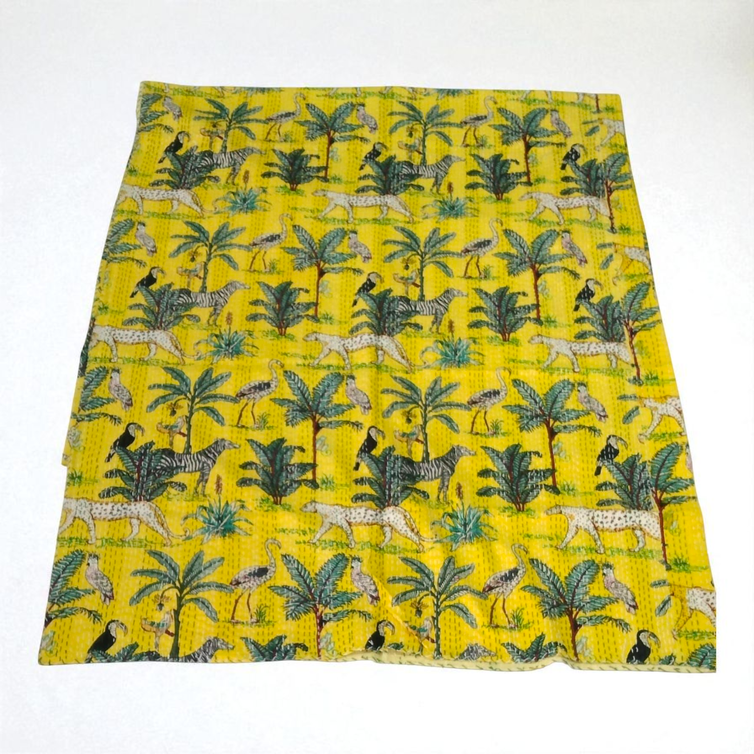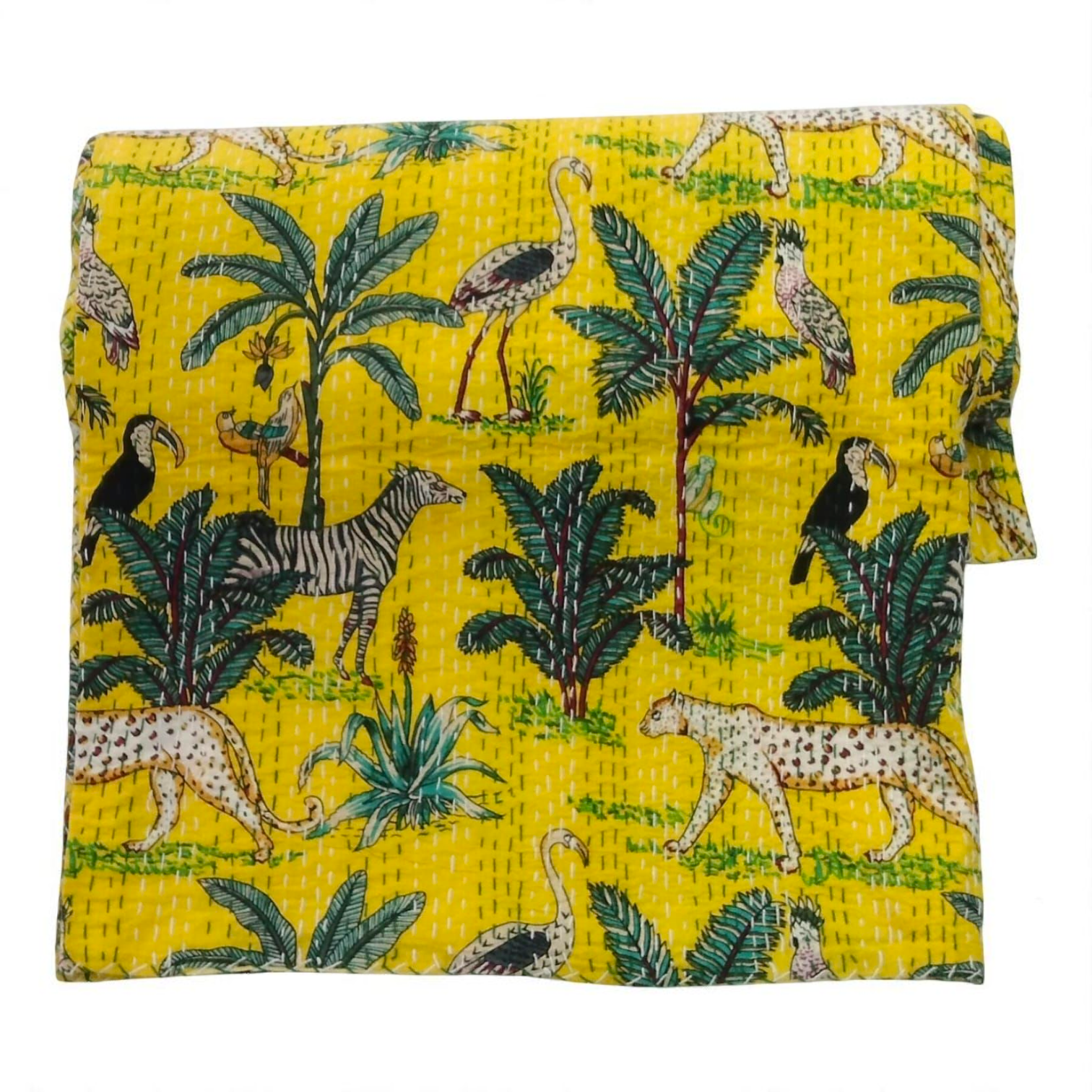 Hand Quilted Kantha Bedcover- Jungle Yellow