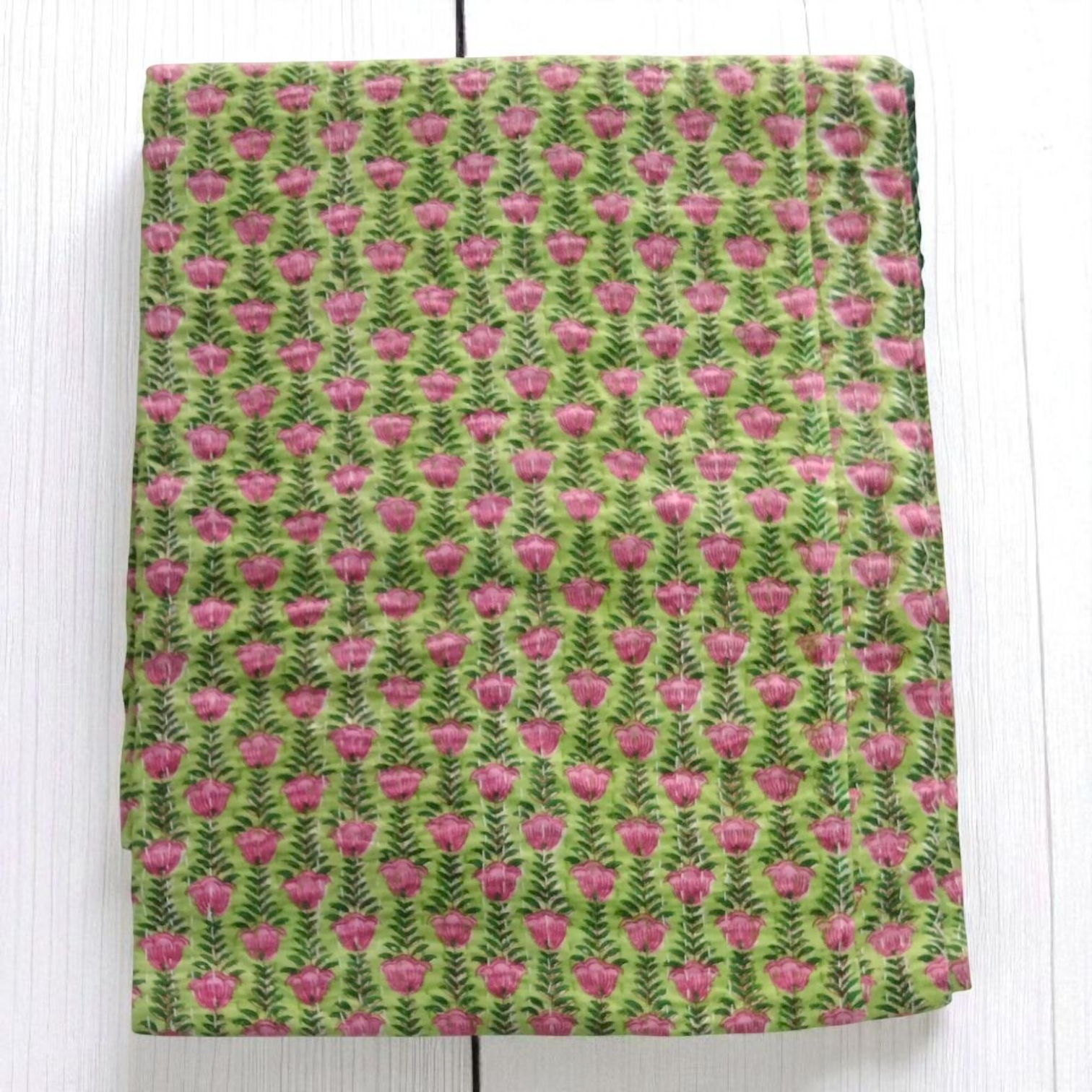 Hand Quilted Kantha Bedcover- Vibe Green