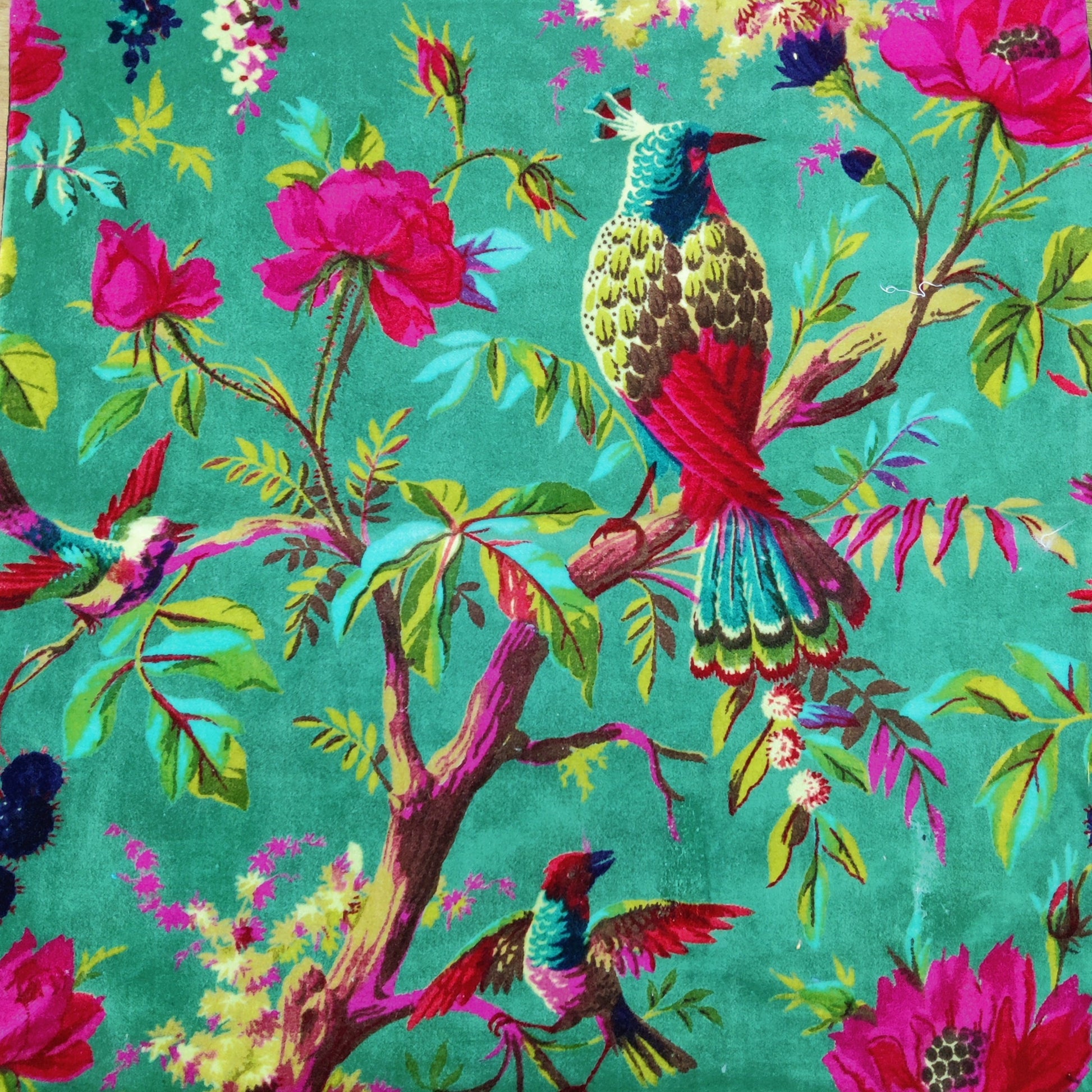 Limited time holiday sale Birds of Paradise Velvet fabric for upholstery-Green